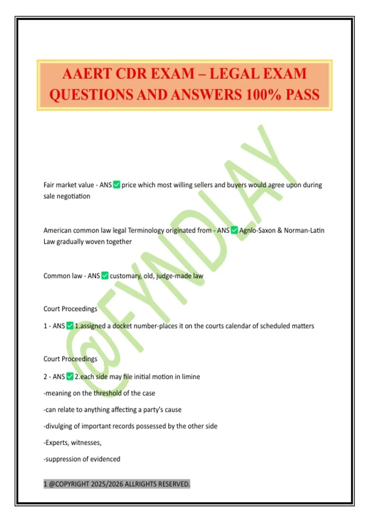 AAERT CDR EXAM – LEGAL EXAM QUESTIONS AND ANSWERS 100% PASS