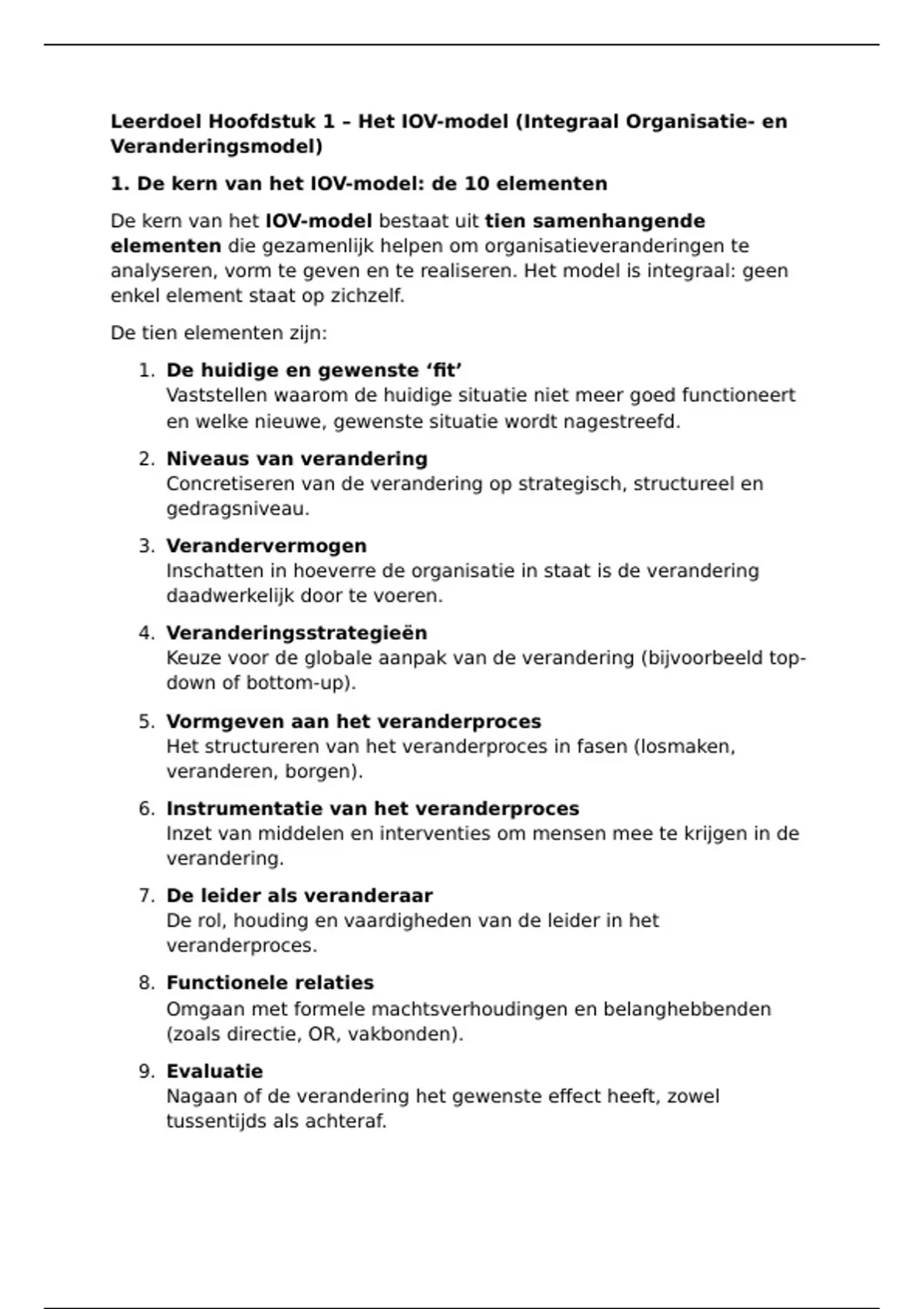 Leerdoel Hoofdstuk 1 – Het IOV-model (Integraal Organisatie- en