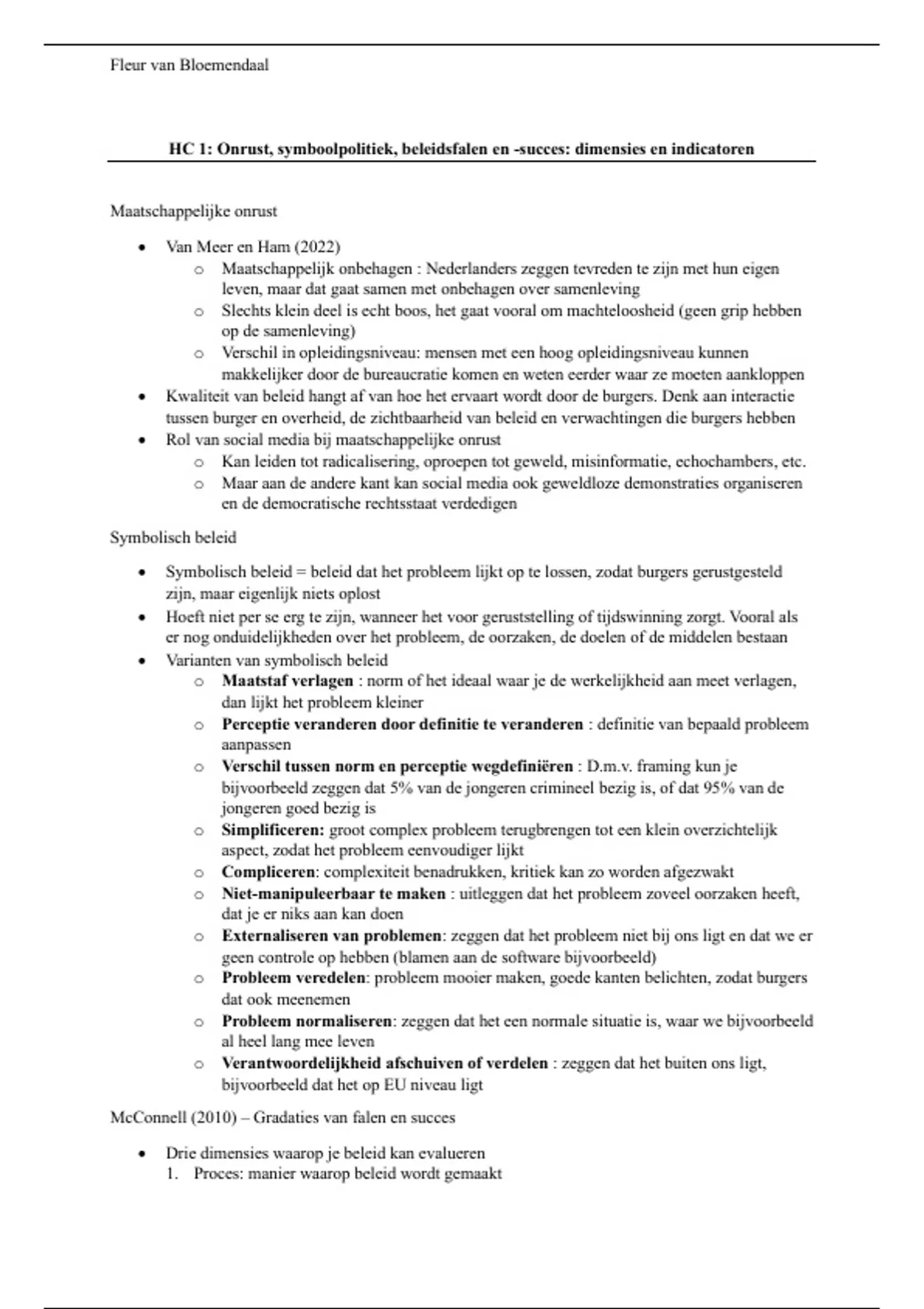 HC 1: Onrust, symboolpolitiek, beleidsfalen en -succes: dimensies en indicatoren