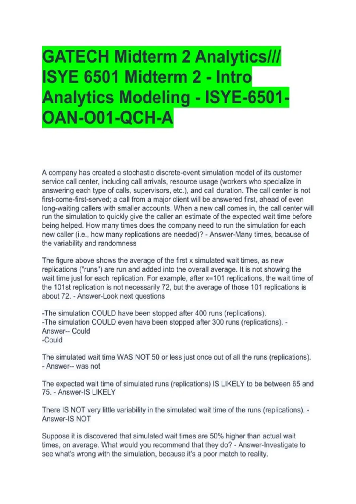 GATECH Midterm 2 Analytics/// ISYE 6501 Midterm 2 - Intro Analytics Modeling - ISYE-6501-OAN-O01-QCH-A
