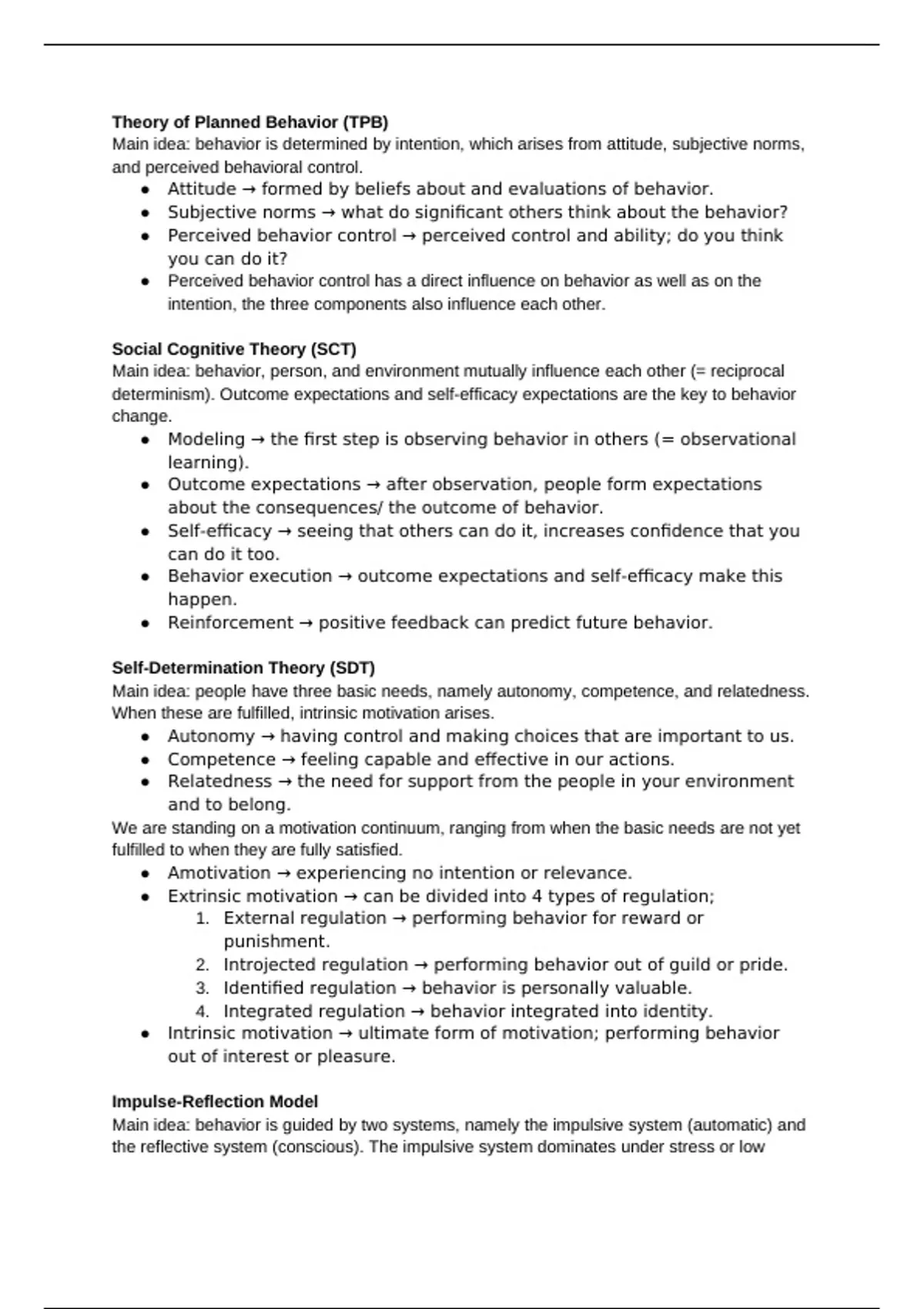 ● Behavior execution → outcome expectations and self-efficacy make this