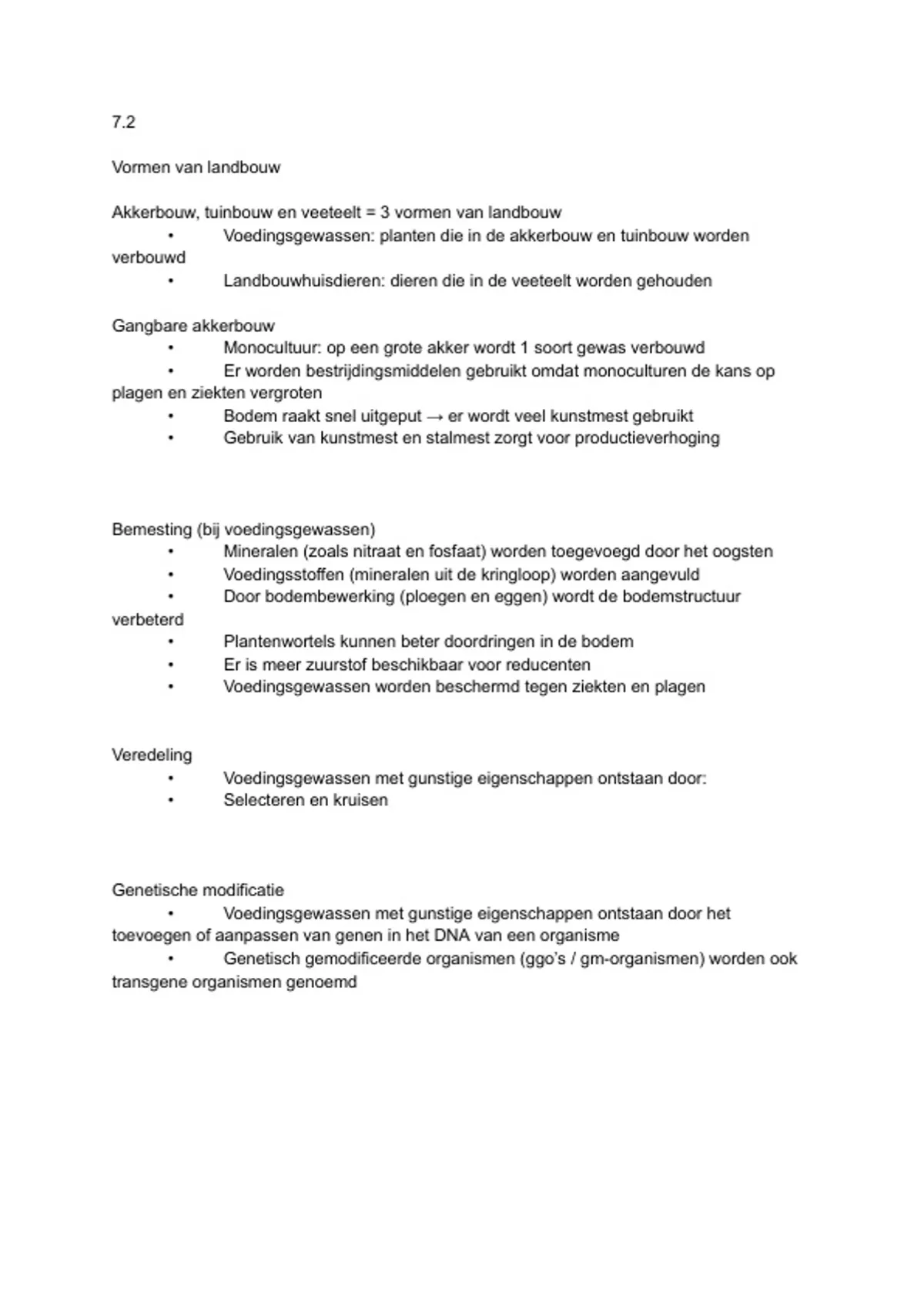 • Monocultuur: op een grote akker wordt 1 soort gewas verbouwd