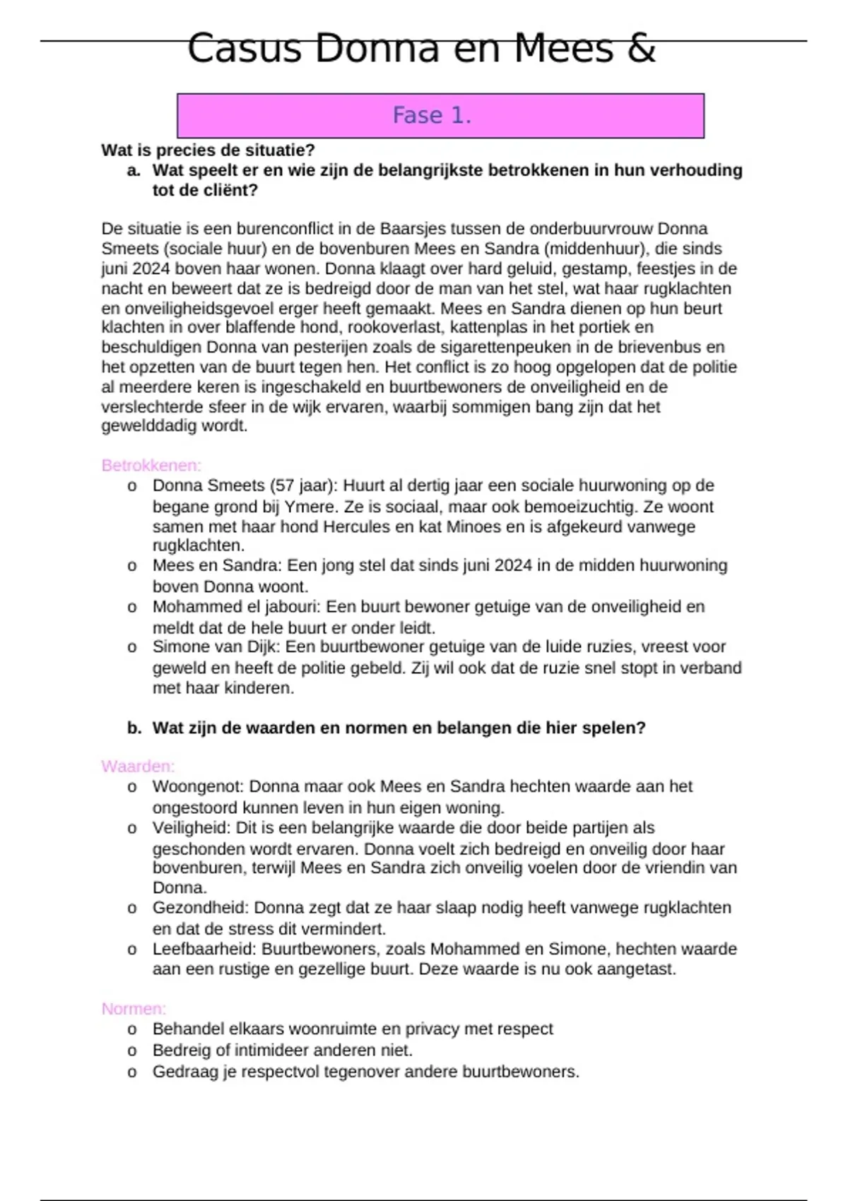 o Belang van Mees en Sandra: stoppen van overlast van Donna en ongestoord