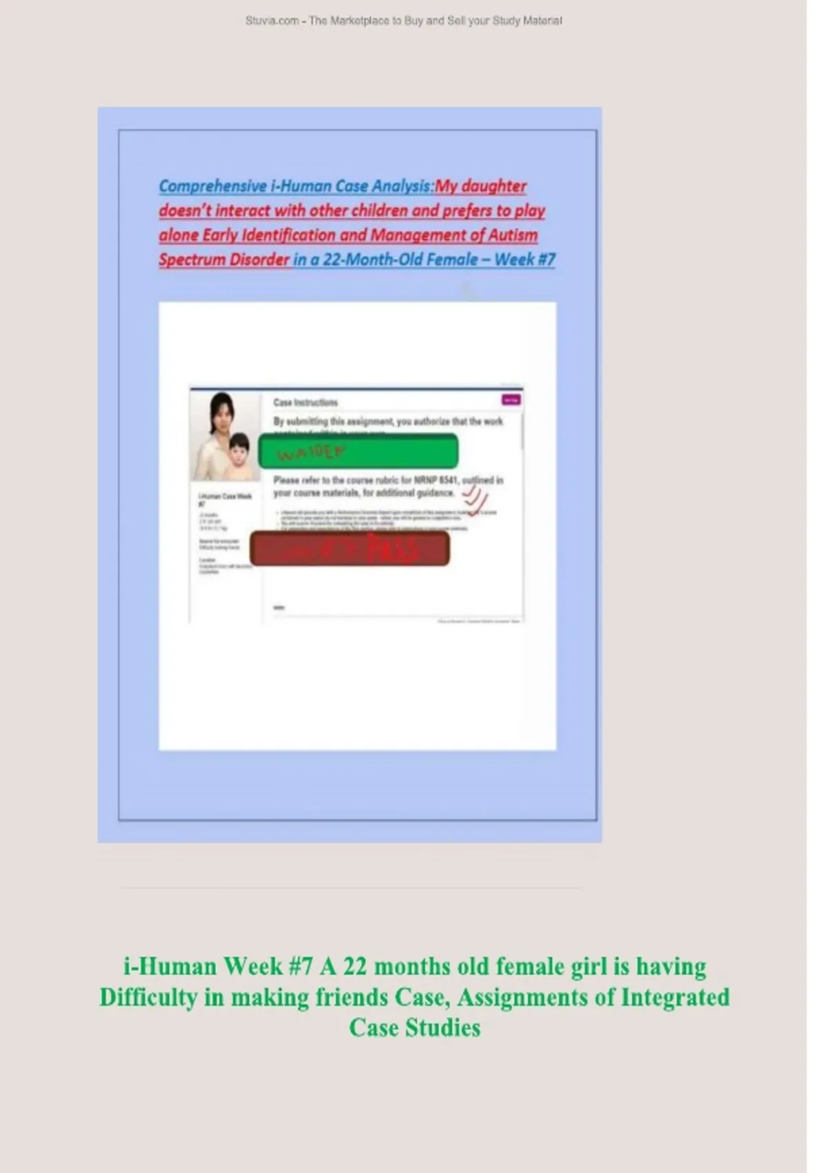 Pediatric Developmental Case Study: 22-Month-Old with Social Difficulties & Autism Screening – i-Human Week 7 Assignment Guide
