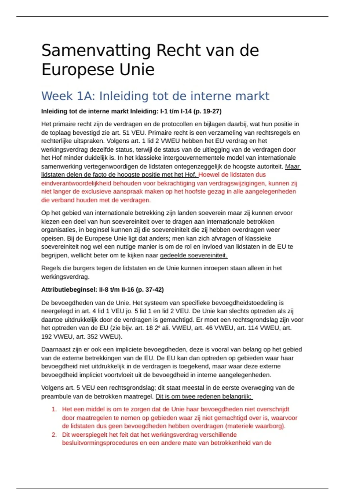 Volledige samenvatting Recht van de Europese Unie van hoorcollege en boek