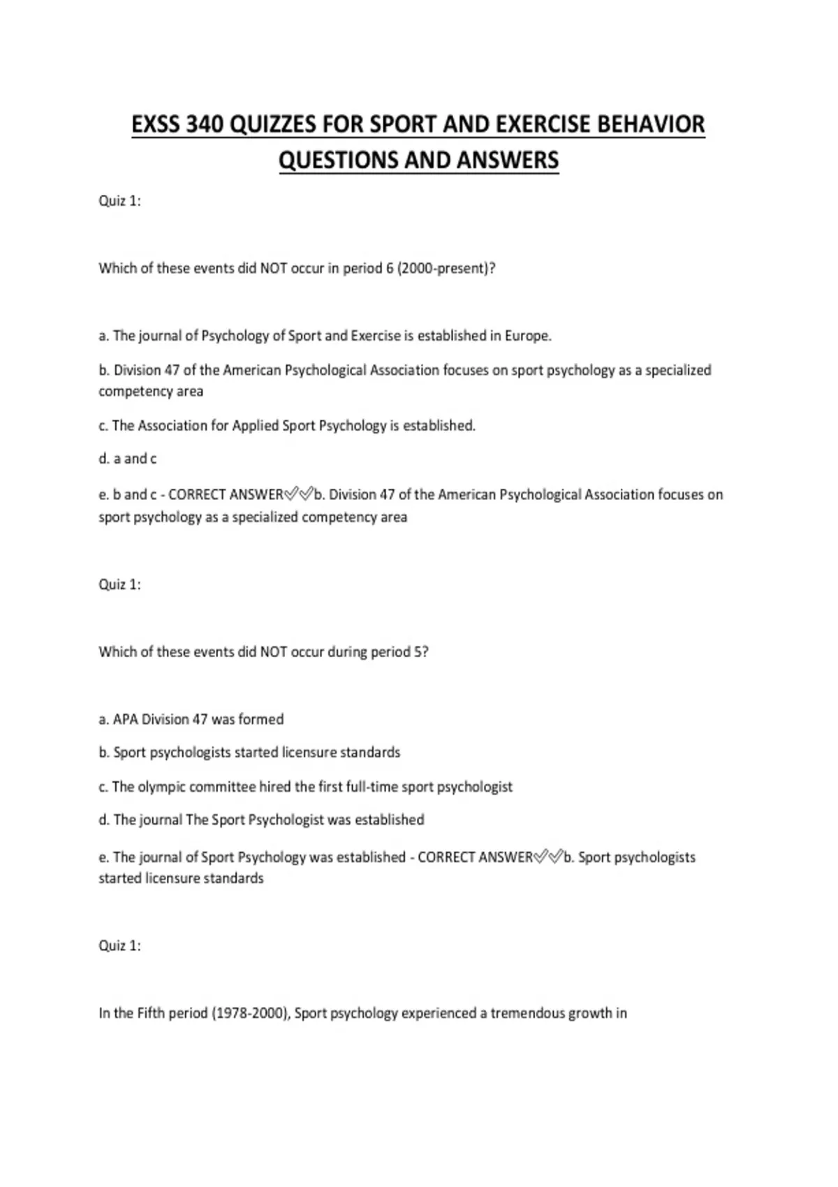 e. The journal of Sport Psychology was established - CORRECT ANSWER✅✅b. Sport psychologists