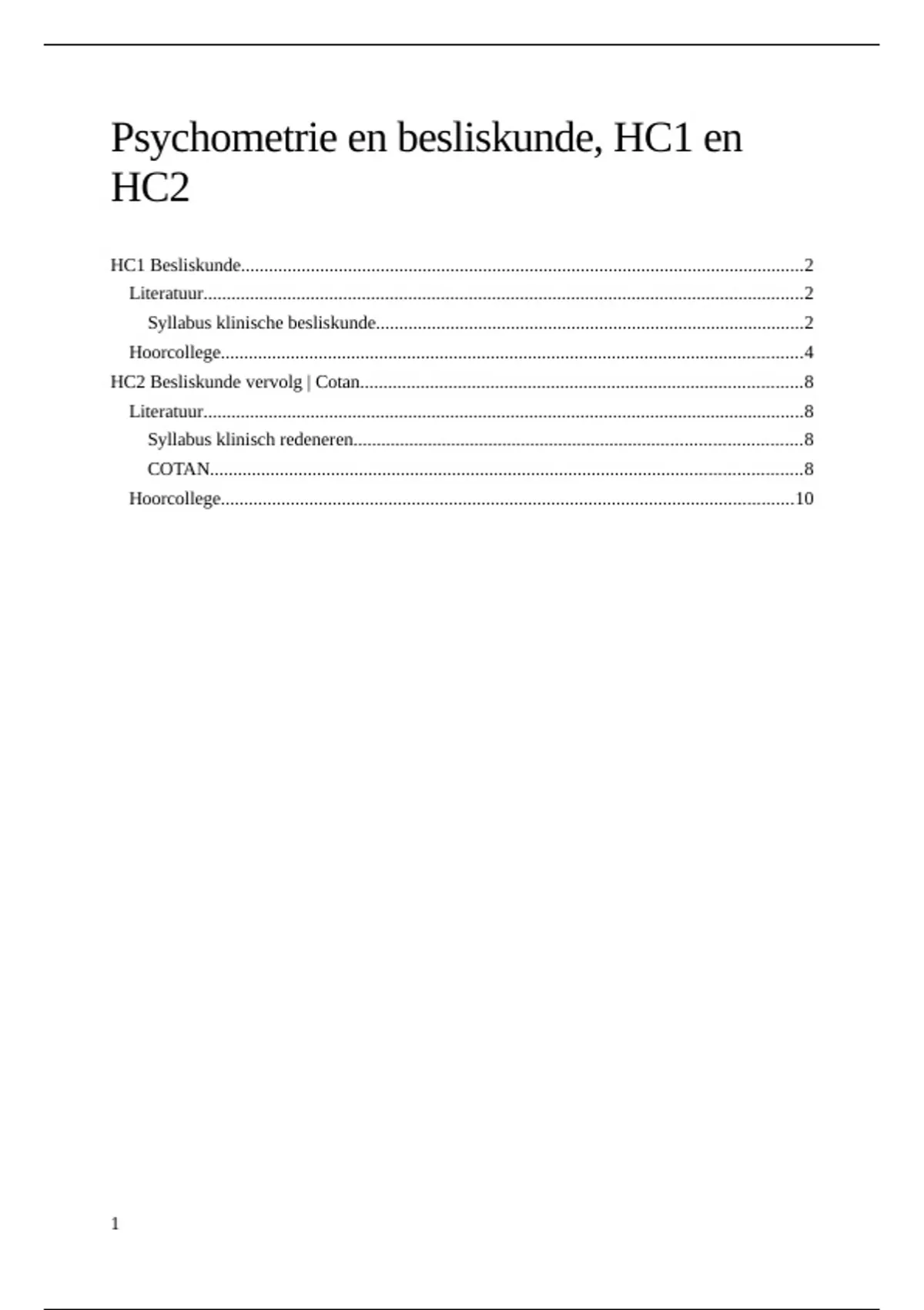 Psychometrie en besliskunde, HC1 en
