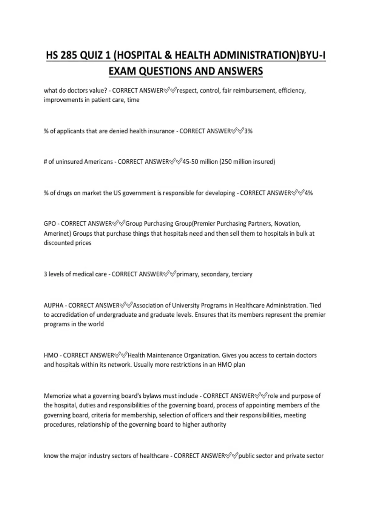 AUPHA - CORRECT ANSWER✅✅Association of University Programs in Healthcare Administration. Tied
