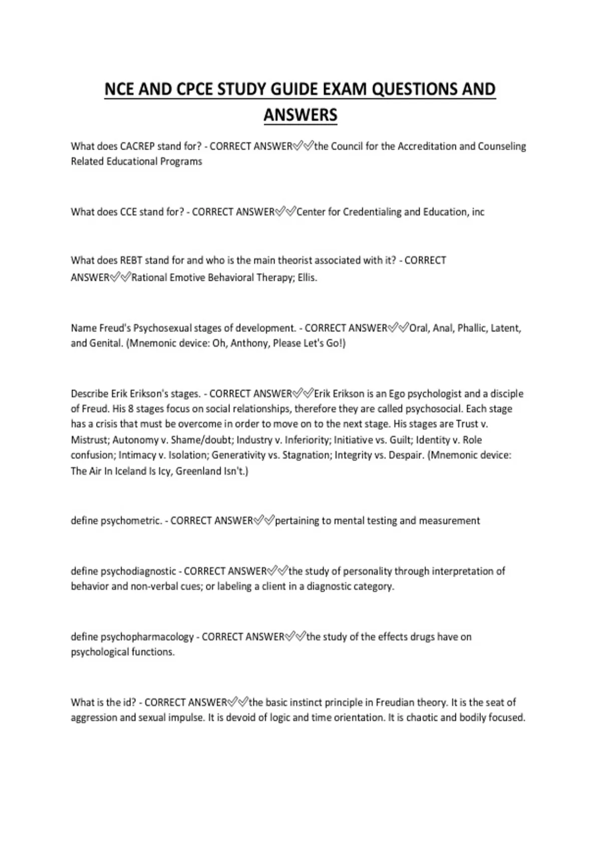 NCE AND CPCE STUDY GUIDE EXAM QUESTIONS AND