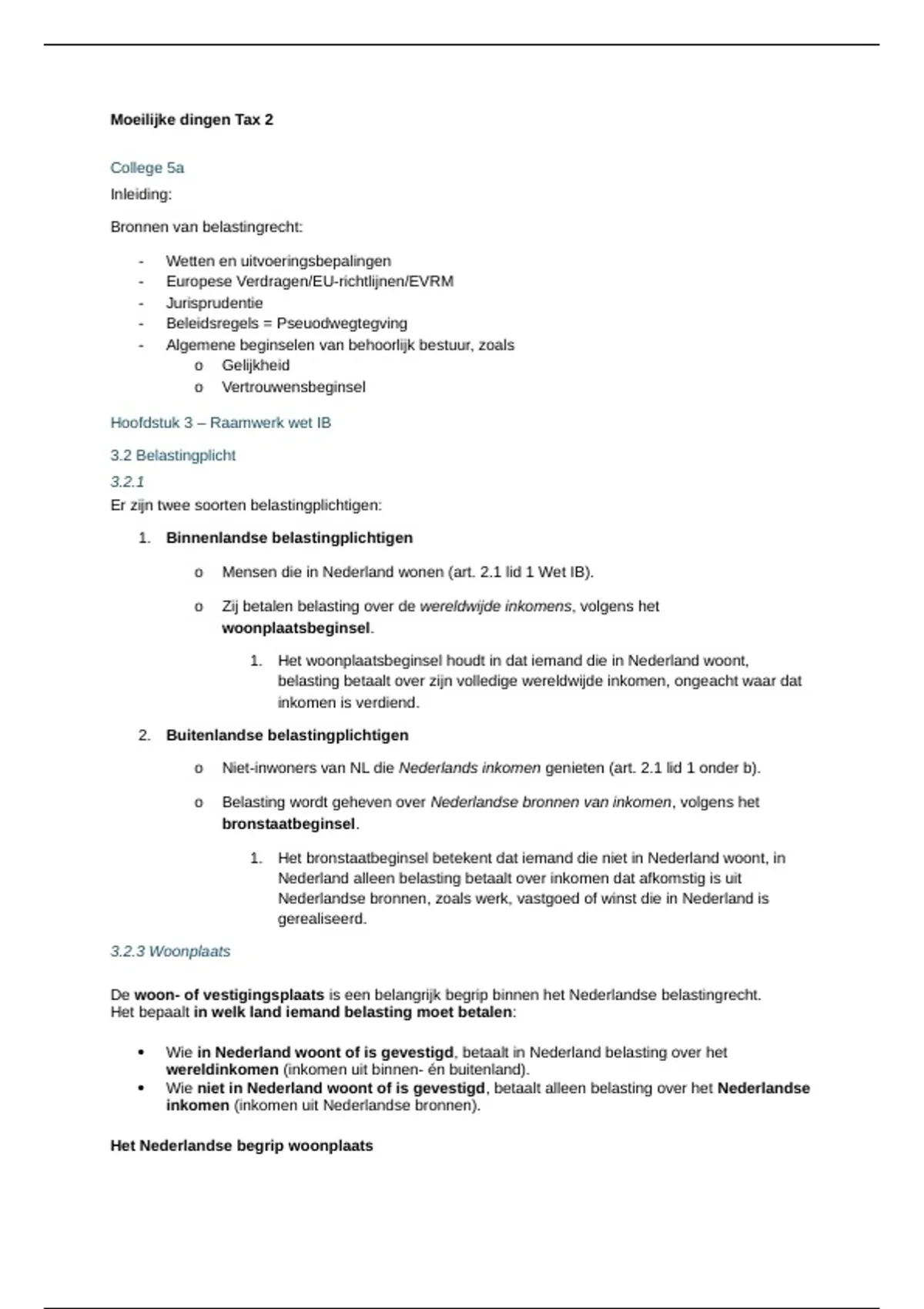 Betreft de volledige samenvatting van het vak Tax 2 voor het instroomprogramma post-master accountancy