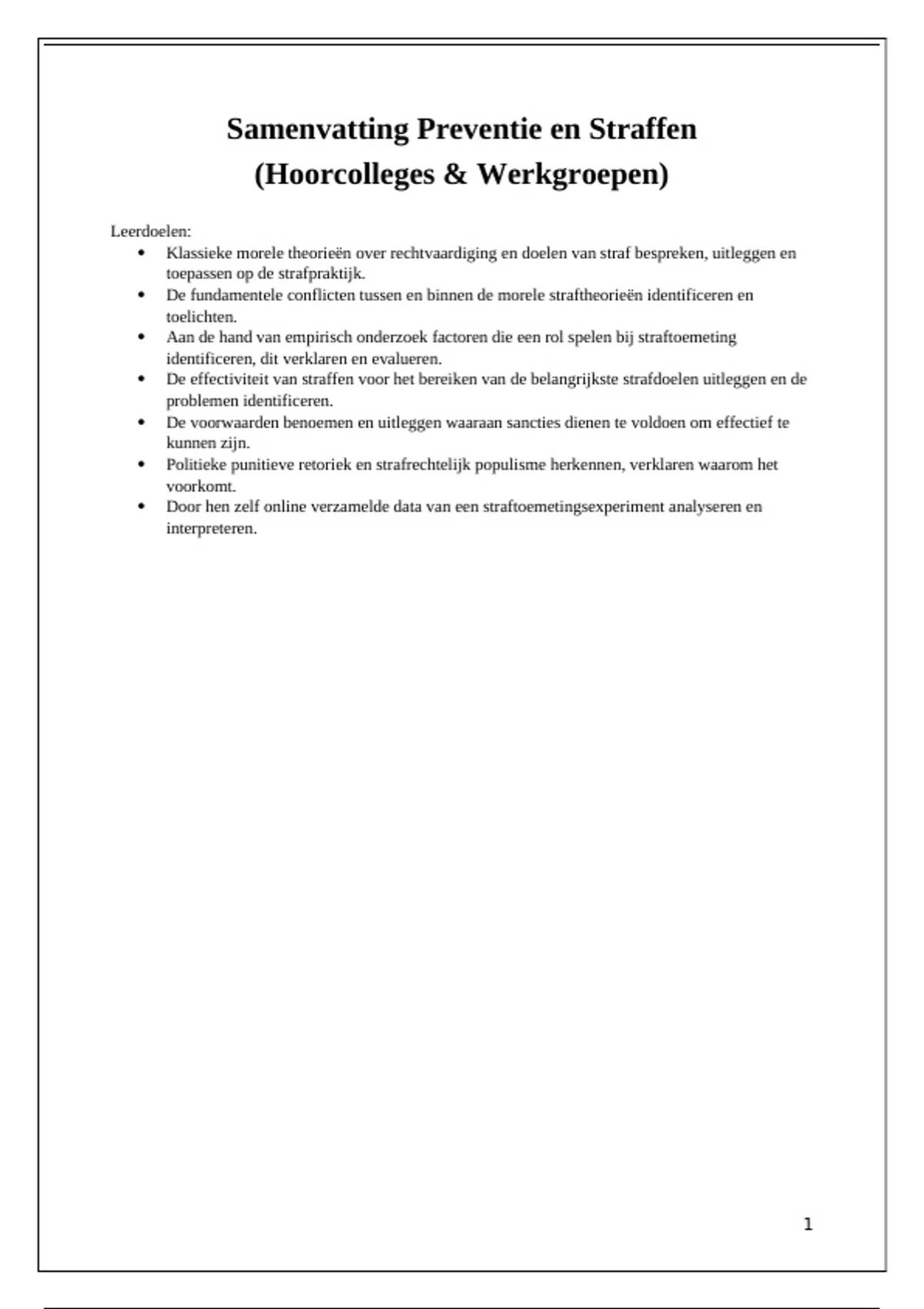 ,Week 1: Rechtvaardiging en doelen van straf