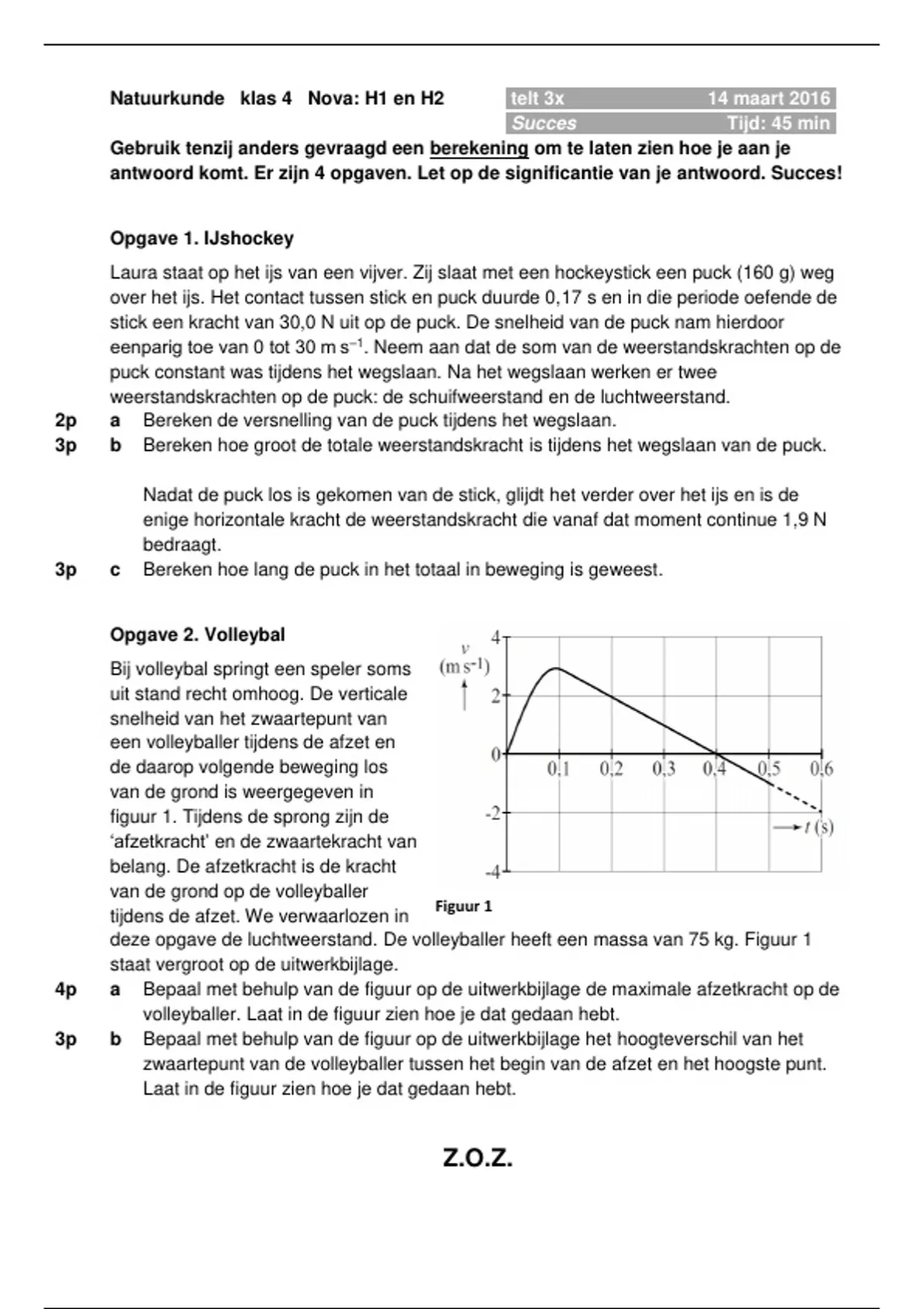 Natuurkunde klas 4 Nova: H1 en H2 telt 3x 14 maart 2016