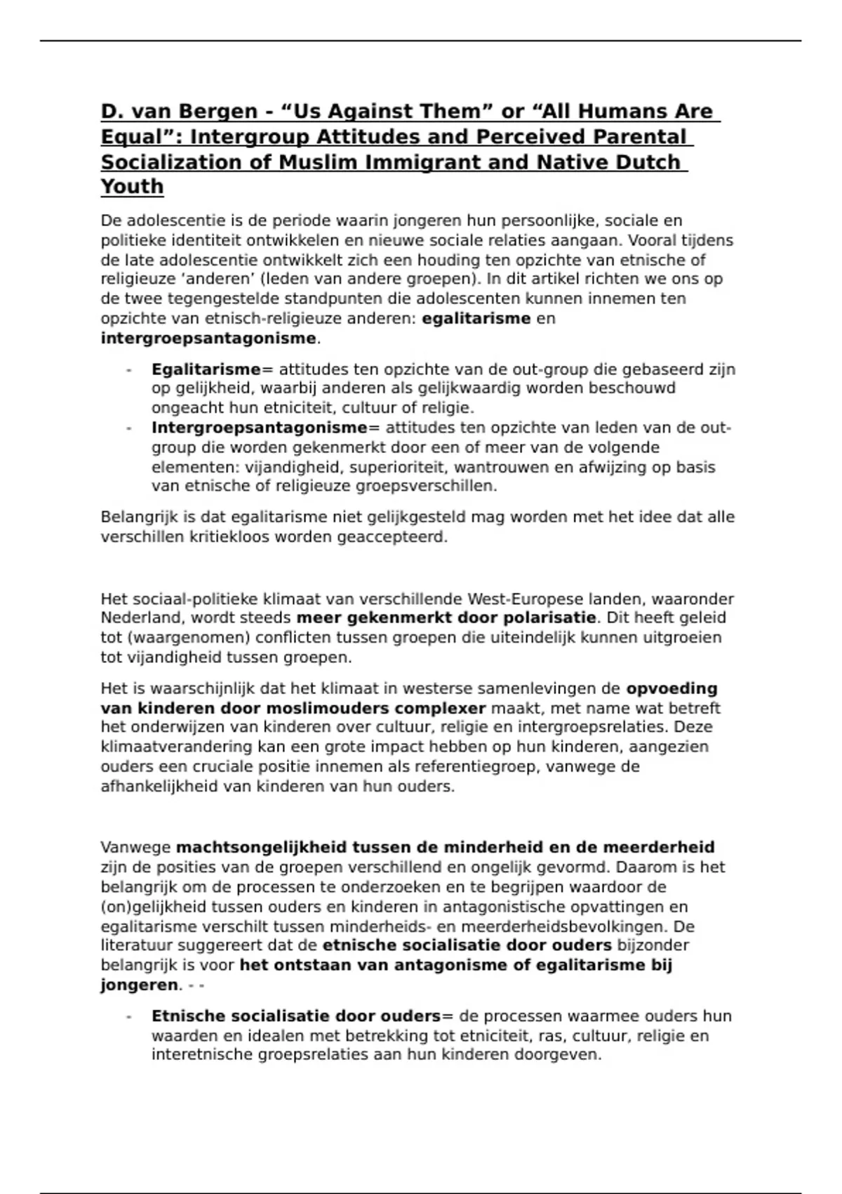 D. van Bergen - “Us Against Them” or “All Humans Are
