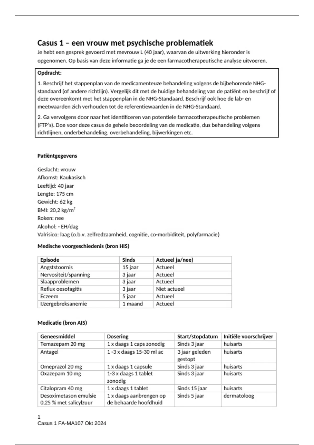 (FTP’s). Doe voor deze casus de gehele beoordeling van de medicatie, dus behandeling volgens