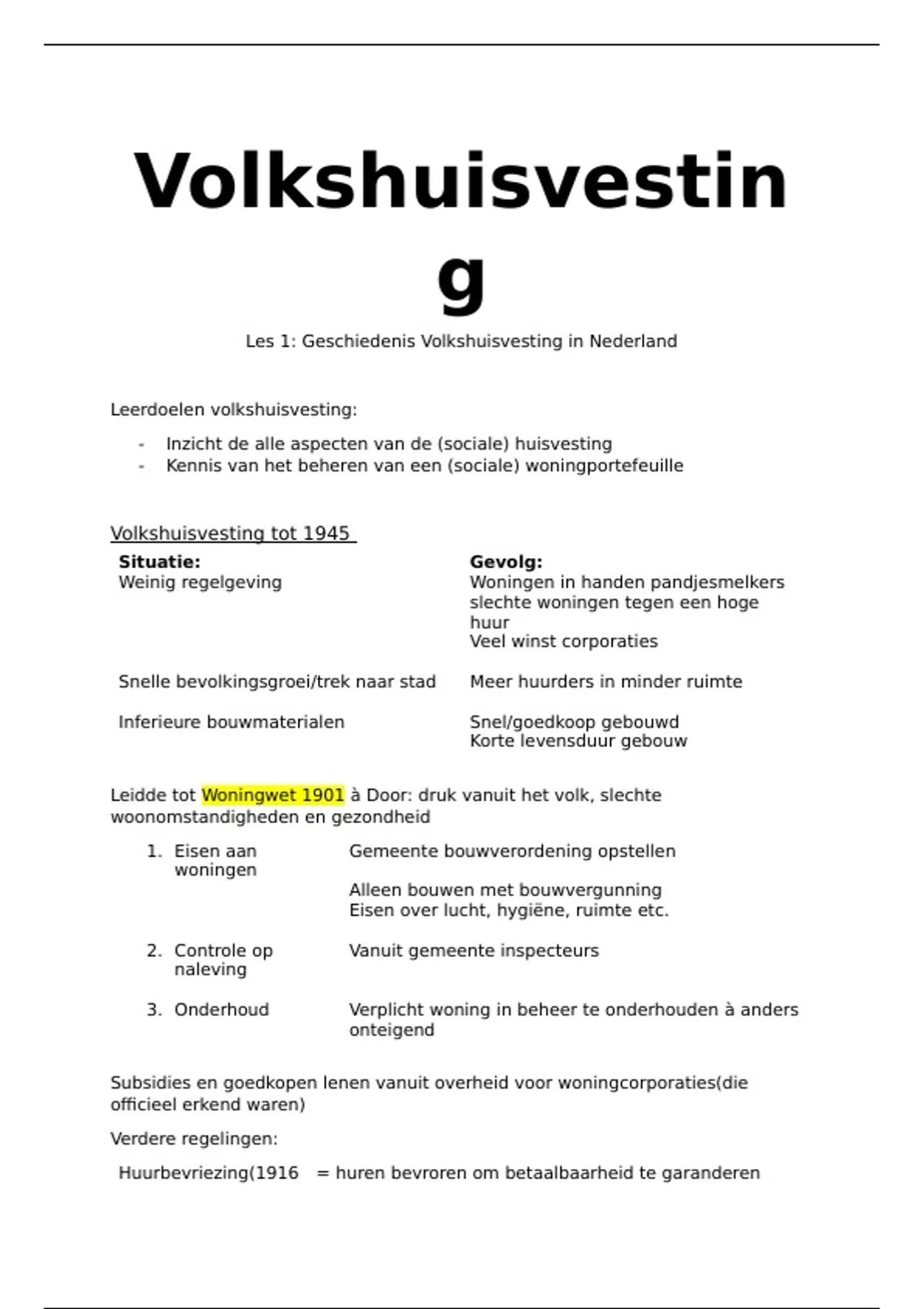 Les 1: Geschiedenis Volkshuisvesting in Nederland