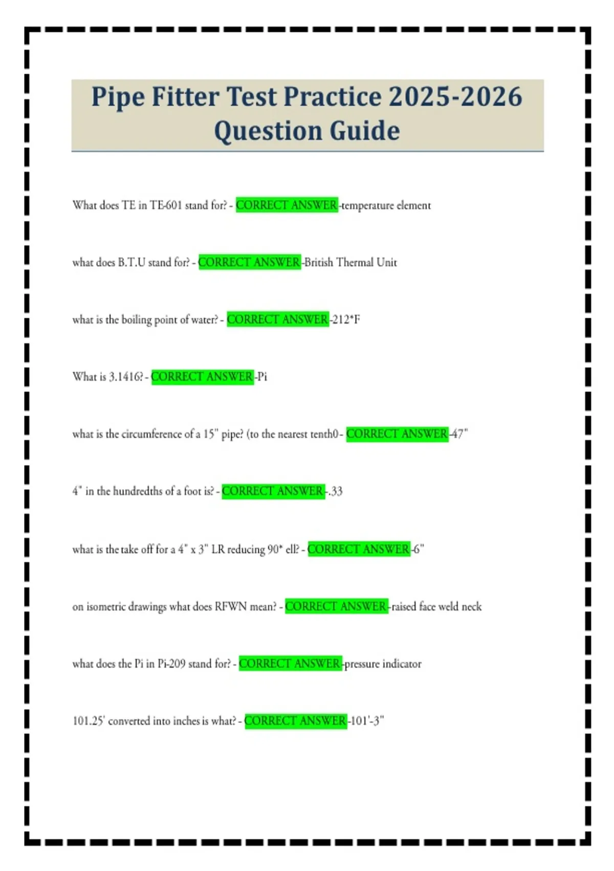 Pipe Fitter Test Practice Question Guide