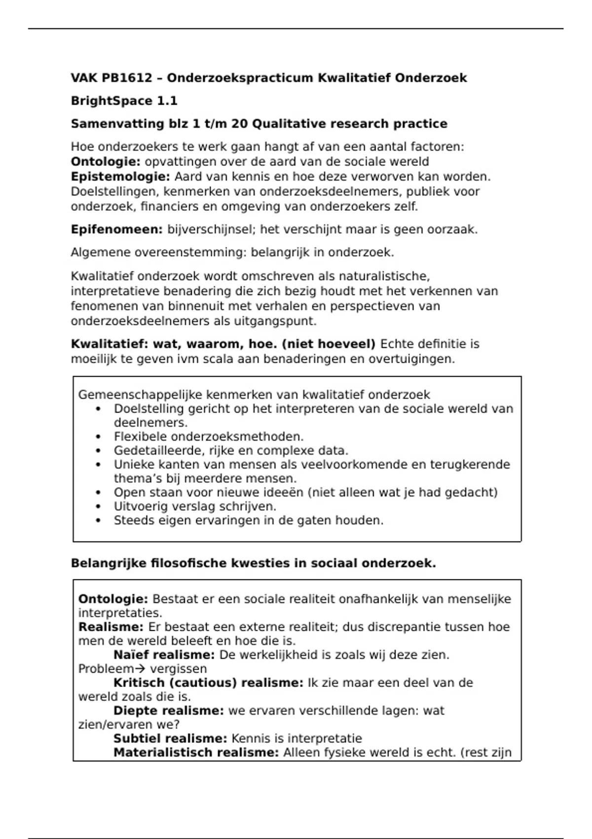 Samenvatting blz 1 t/m 20 Qualitative research practice