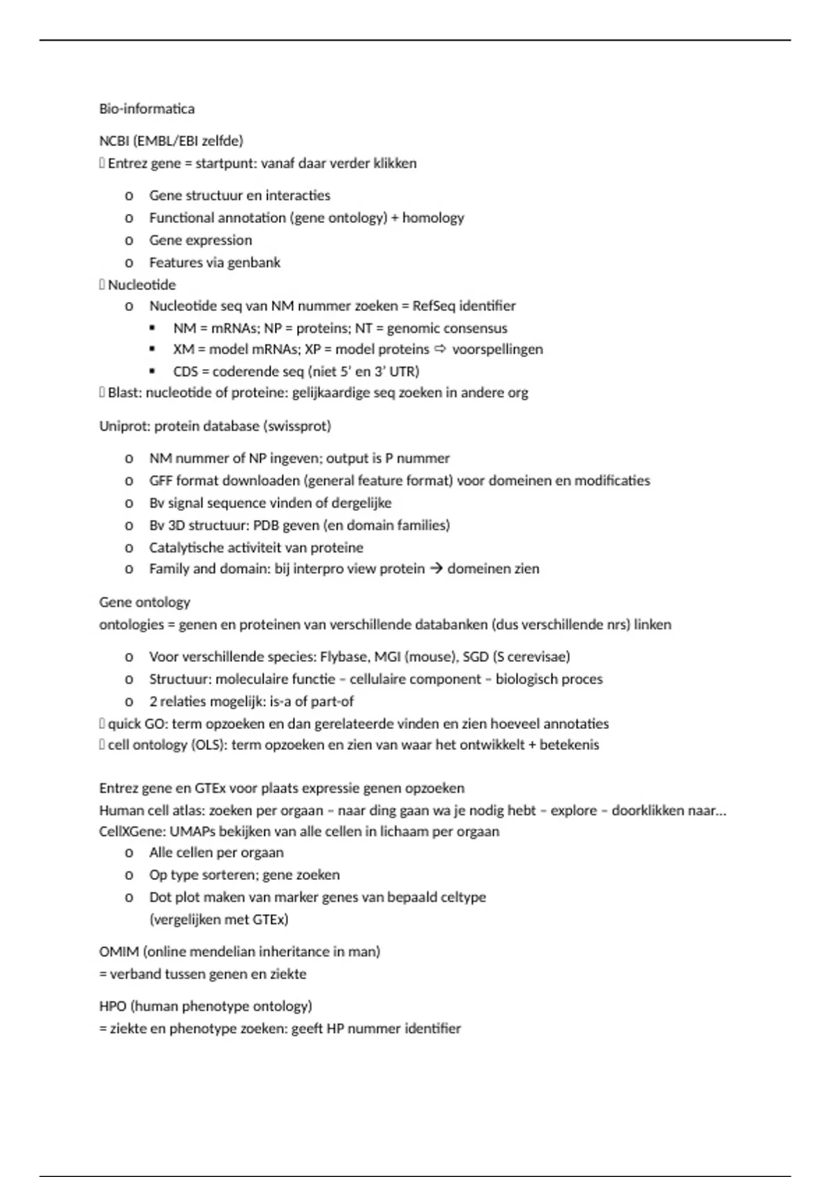 o Voor verschillende species: Flybase, MGI (mouse), SGD (S cerevisae)