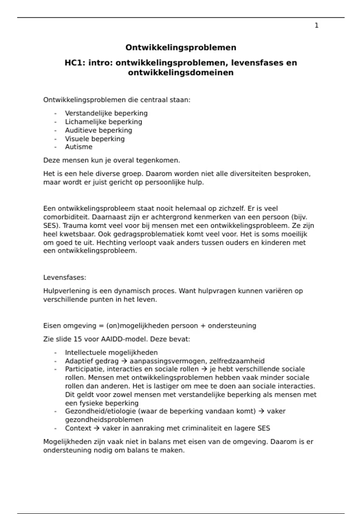 Aantekeningen van alle hoorcolleges van ontwikkelingsproblemen.