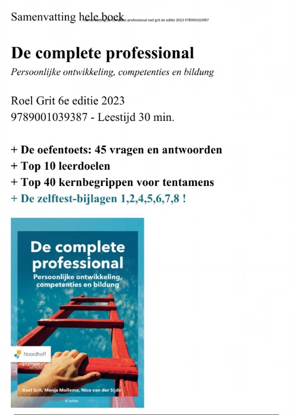 ,Samenvatting de complete professional roel grit 6e editie 2023 978900103987
