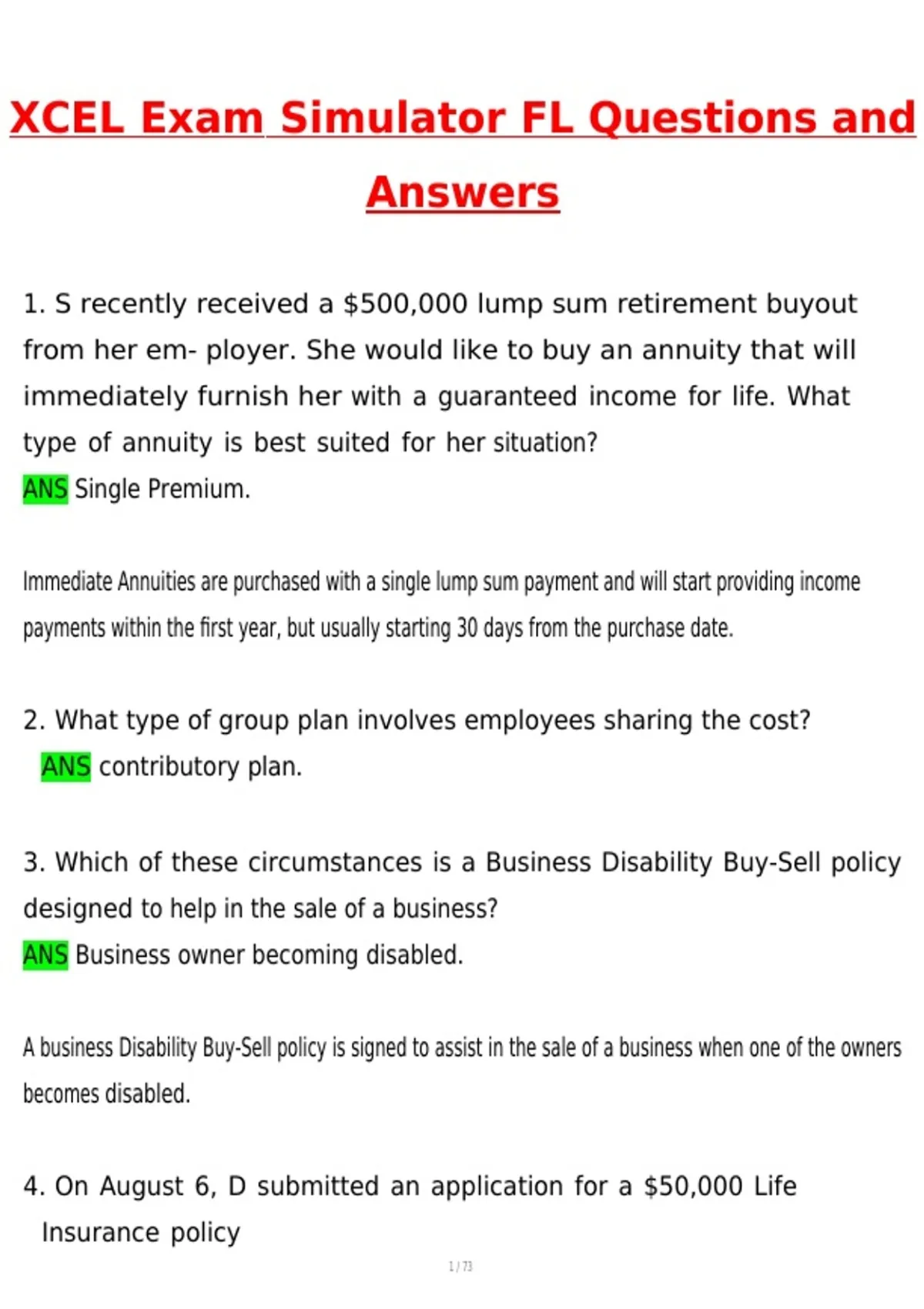 XCEL Exam Simulator Florida Newest 2026 Updated | Questions with 100% Correct Answers Complete | Updated 2026 / 2027 Verified by Experts XCEL Exam Complete Prep Pack (2026 / 2027) is a comprehensive, exam-accurate study resource designed for students preparing for the XCEL Final Exam, XCEL Life Insurance Exam, XCEL Life Policies Exam, and Florida 2-15 Life & Health State Exam Simulator. Built specifically for licensing candidates using the XCEL Solutions platform, this guide includes actual 2026 exam-style questions with verified correct answers, structured to mirror real test conditions and scoring formats. The material covers XCEL Life Insurance concepts in full, including life policy types, term life, whole life, universal life, annuities, riders, beneficiaries, ownership rights, premium calculations, underwriting, taxation, policy provisions, exclusions, and claims procedures. It also aligns with XCEL Practice Exams, XCEL Exam Test Banks (400 questions), and XCEL Final Exam simulations, making it ideal for both first-time test takers and repeat candidates. This study guide is especially effective for students using the XCEL 2-15 Florida Life & Health Exam Simulator, as it reinforces high-frequency exam topics and commonly tested scenarios. Questions are written in a clear, exam-focused format to strengthen comprehension, improve recall, and build confidence under timed conditions. Verified answers allow students to identify weak areas quickly and focus on what matters most to pass. Designed for A+ grade performance, this resource supports final exam review, practice testing, and last-minute preparation. Whether you are completing XCEL coursework, preparing for a state licensing exam, or retaking the final, this guide helps you study efficiently and pass with confidence. Fully updated for 2026 / 2027 testing standards, it provides reliable, up-to-date content students can trust. Instant PDF download allows immediate access on any device for flexible, on-the-go study.