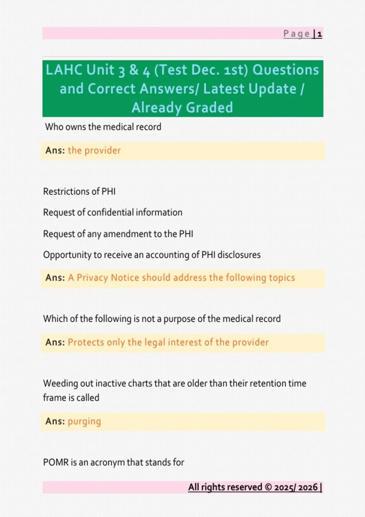 and Correct Answers/ Latest Update /