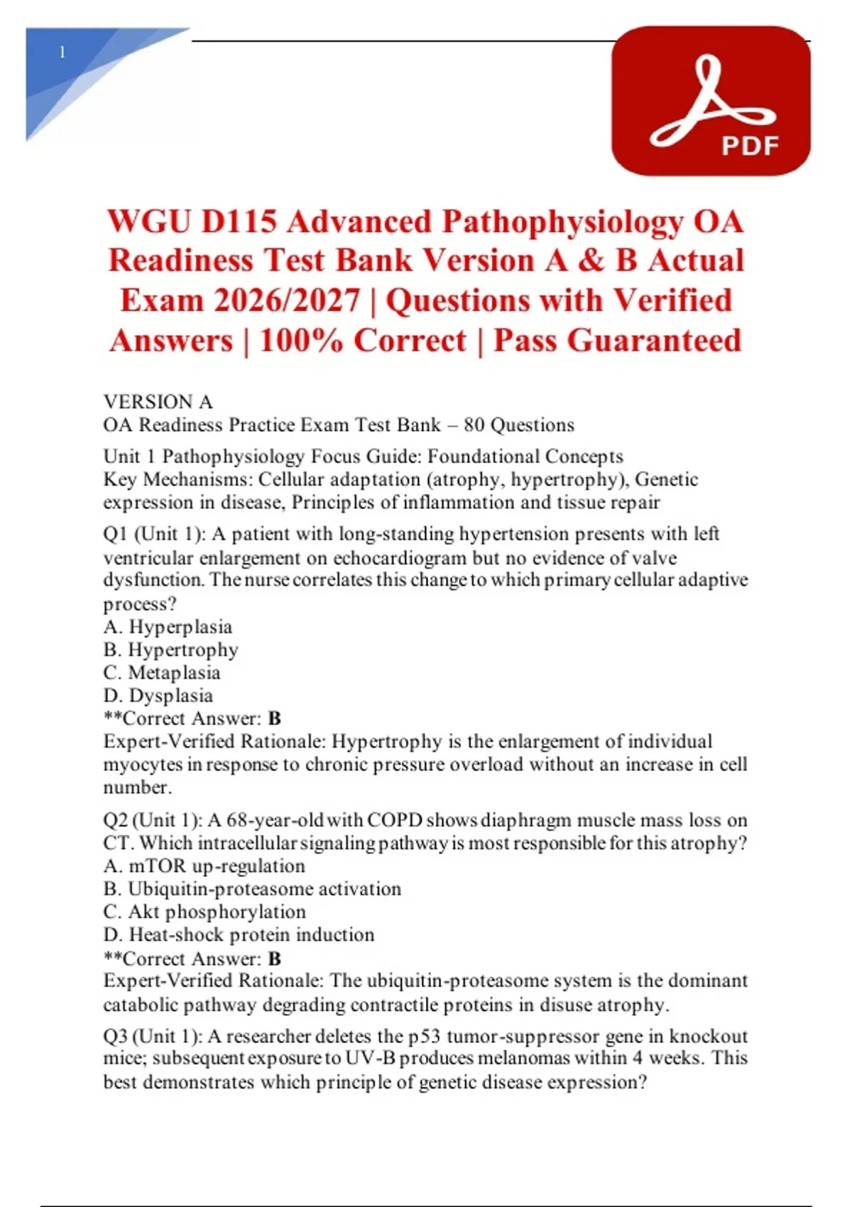 OA Readiness Practice Exam Test Bank – 80 Questions