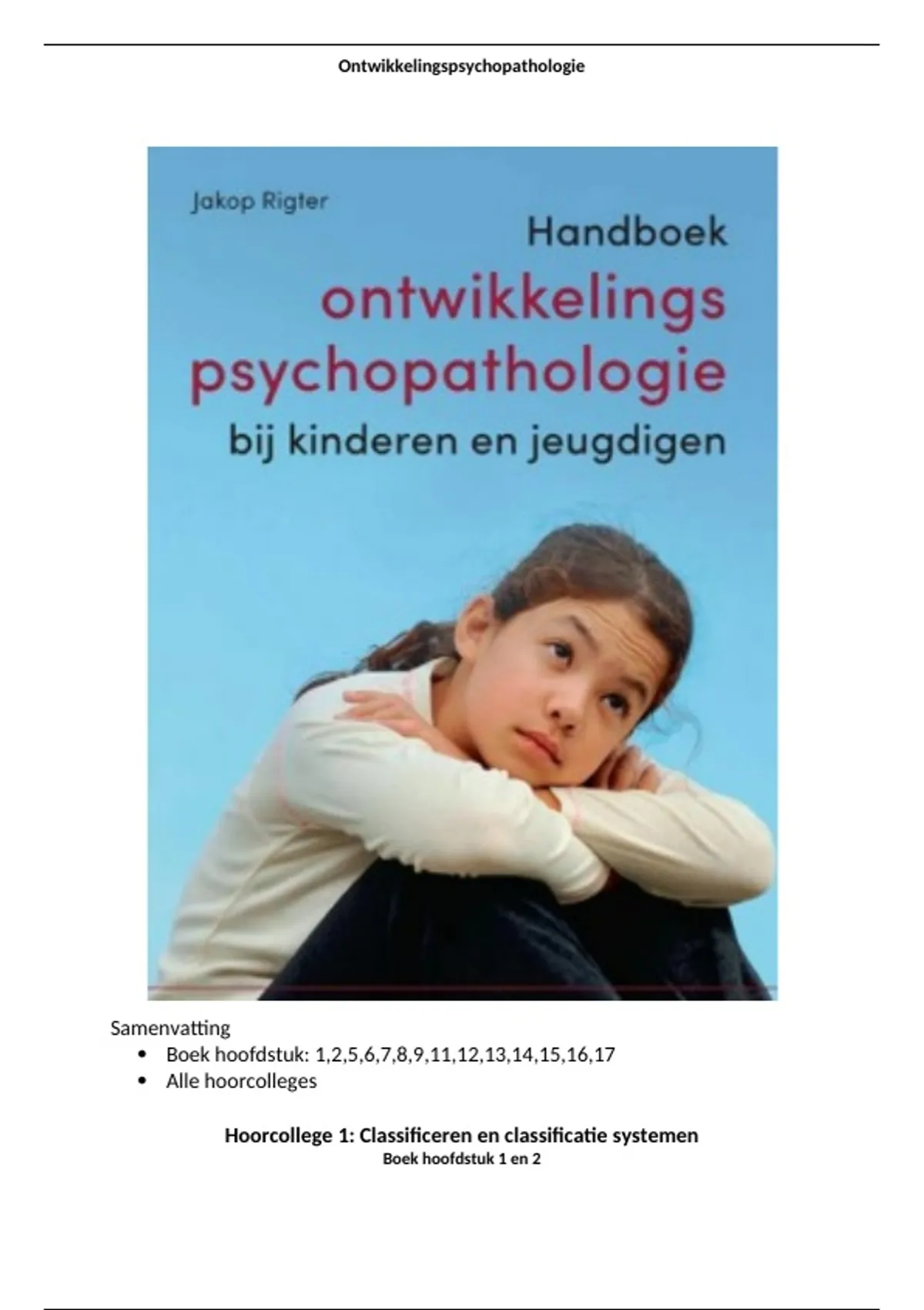 Ontwikkelingspsychopathologie= het ontstaan en het beloop van psychische stoornissen worden