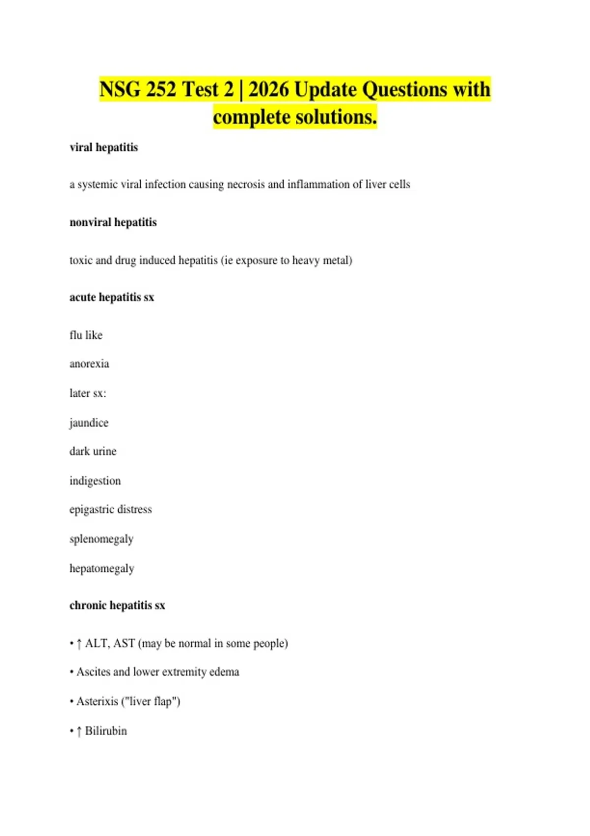 NSG 252 Test 2 | 2026 Update Questions with complete solutions