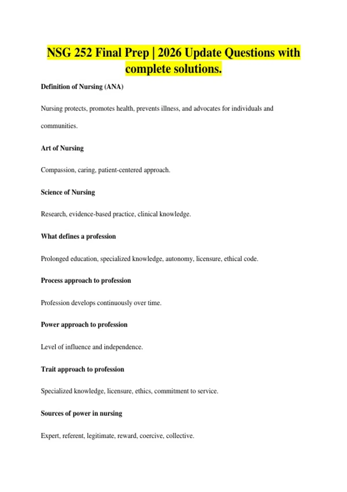 NSG 252 Final Prep | 2026 Update Questions with