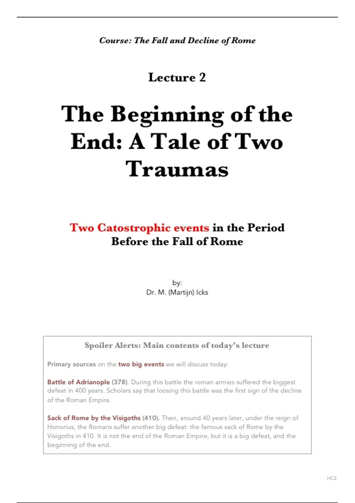 Sack of Rome by the Visigoths (410). Then, around 40 years later, under the reign of