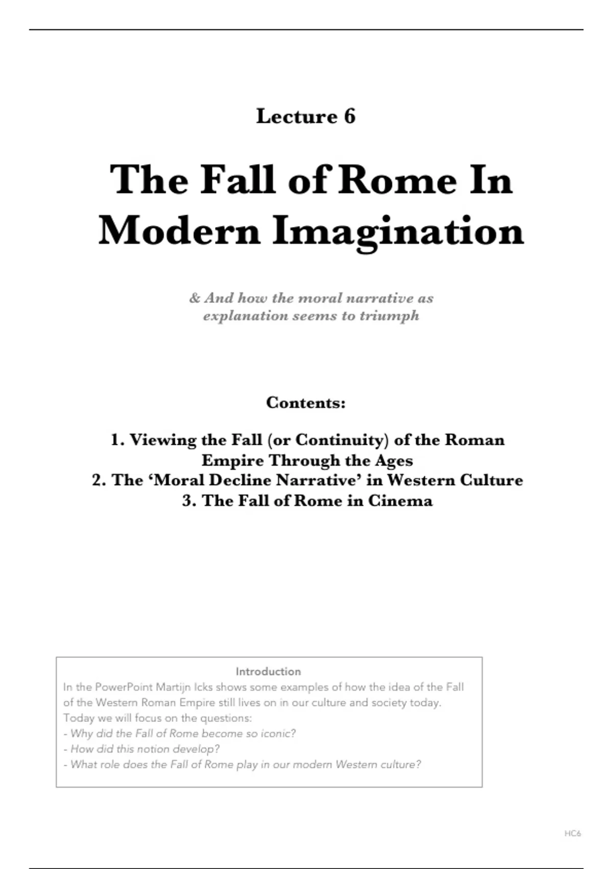 - What role does the Fall of Rome play in our modern Western culture?