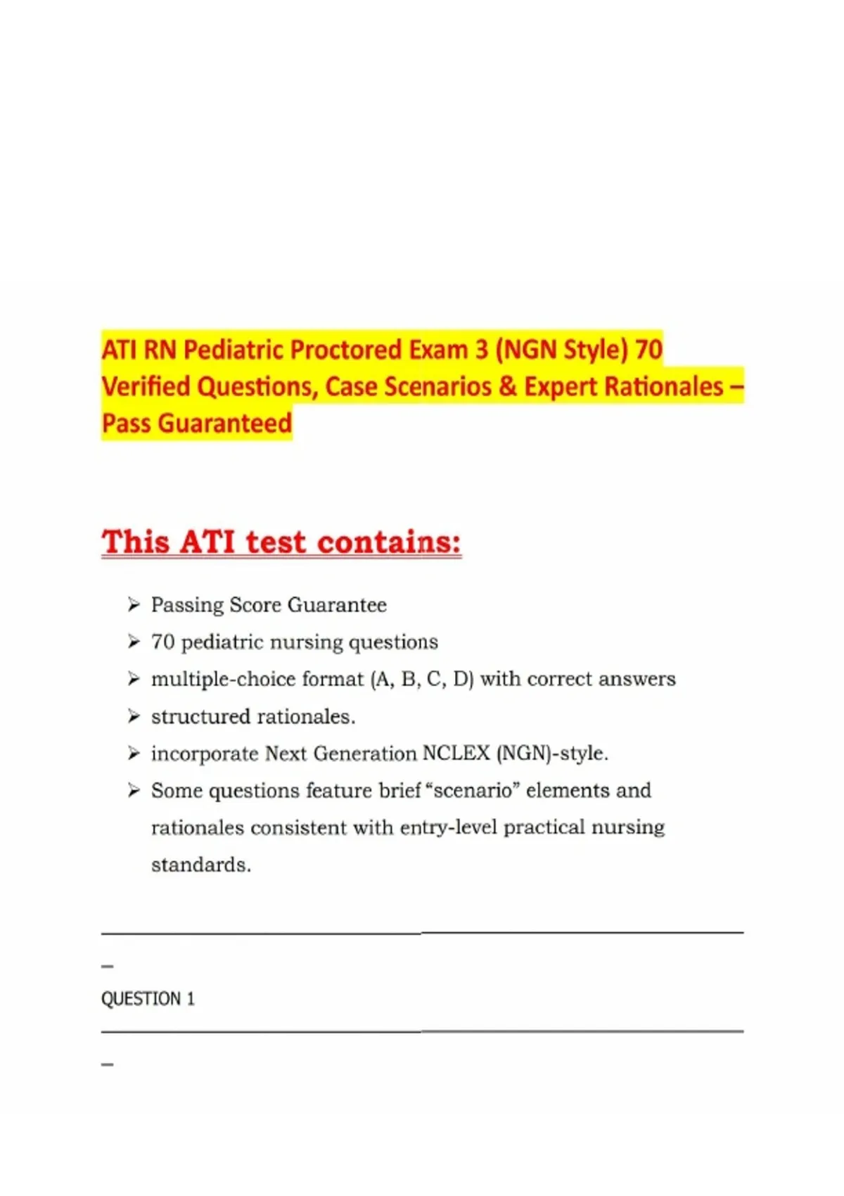 ATI RN Pediatric Proctored Exam 3 (NGN Style) 70 Verified Questions, Case Scenarios & Expert Rationales – Pass Guaranteed.pdf