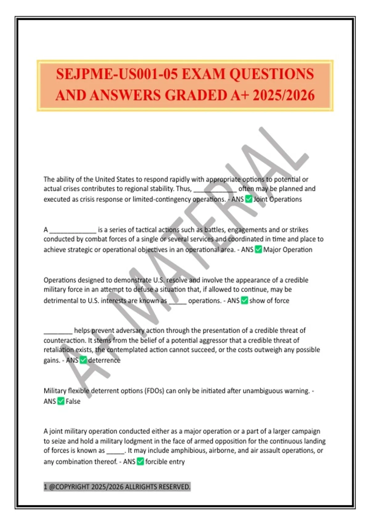 SEJPME-US001-05 EXAM QUESTIONS AND ANSWERS GRADED A+ 2025/2026