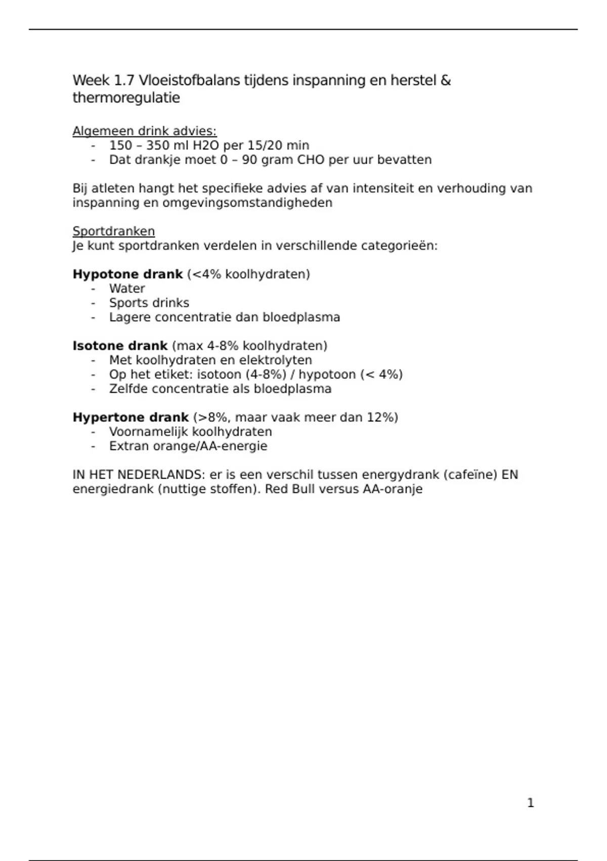 Week 1.7 Vloeistofbalans tijdens inspanning en herstel &