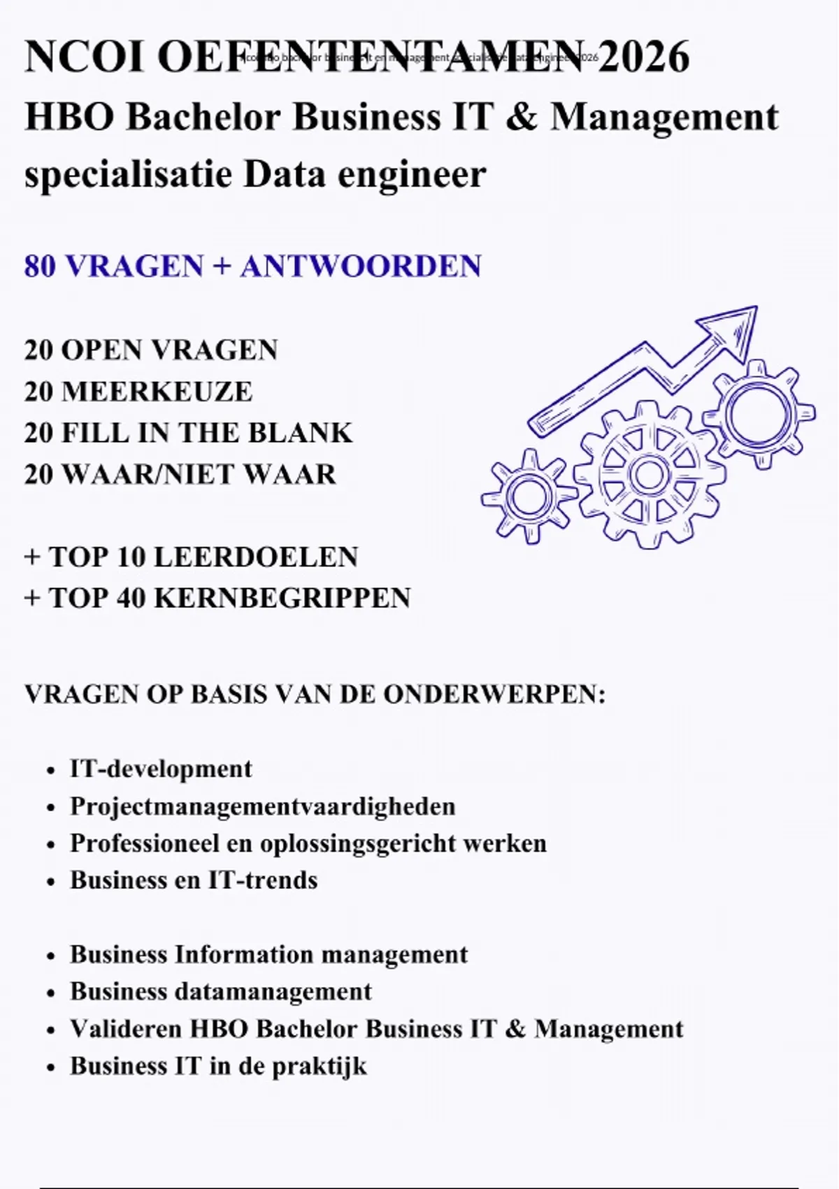 Oefententamen NCOI HBO Bachelor Business IT & Management specialisatie Data engineer - Nieuw 2026