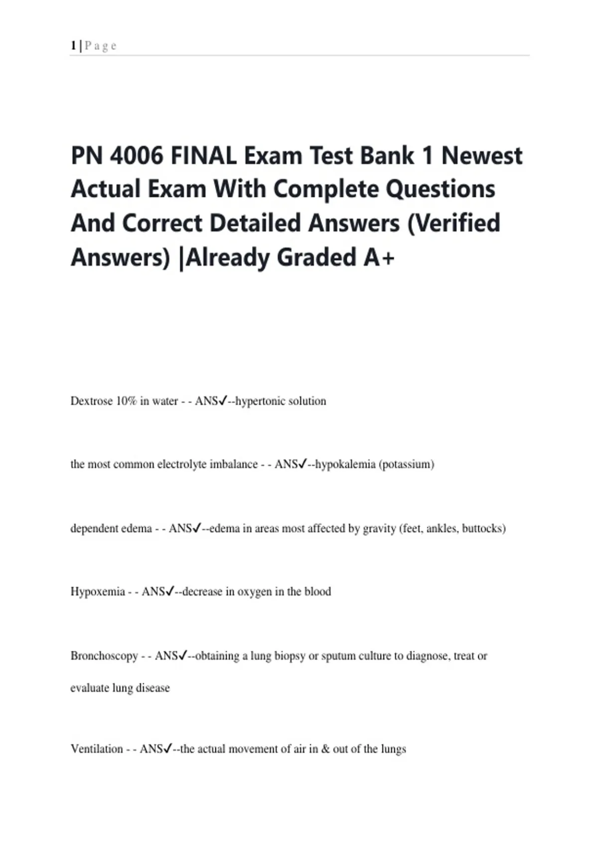 PN 4006 FINAL Exam Test Bank 1 Newest Actual Exam With Complete Questions And Correct Detailed Answers (Verified Answers) |Already Graded A+