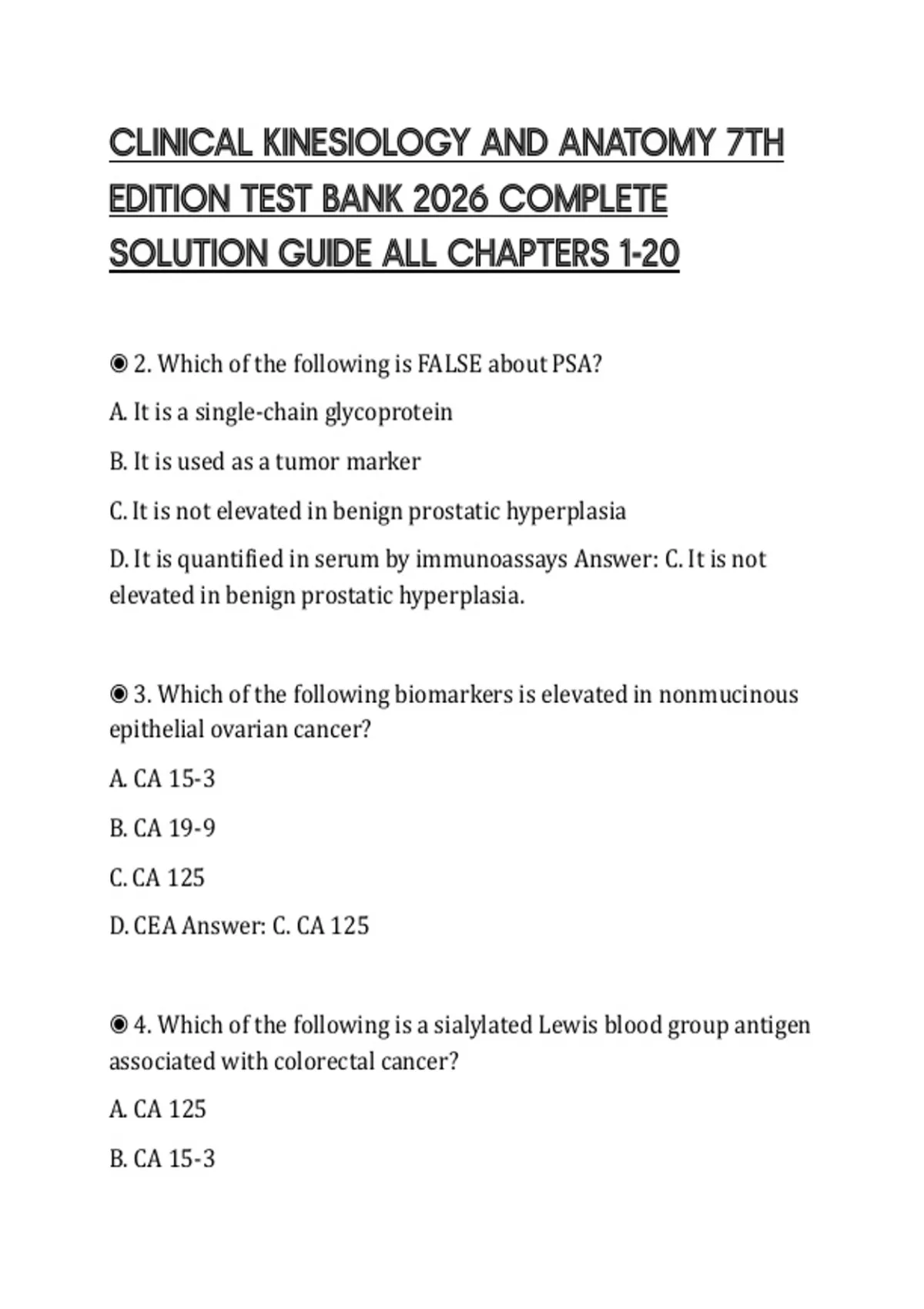◉ 3. Which of the following biomarkers is elevated in nonmucinous