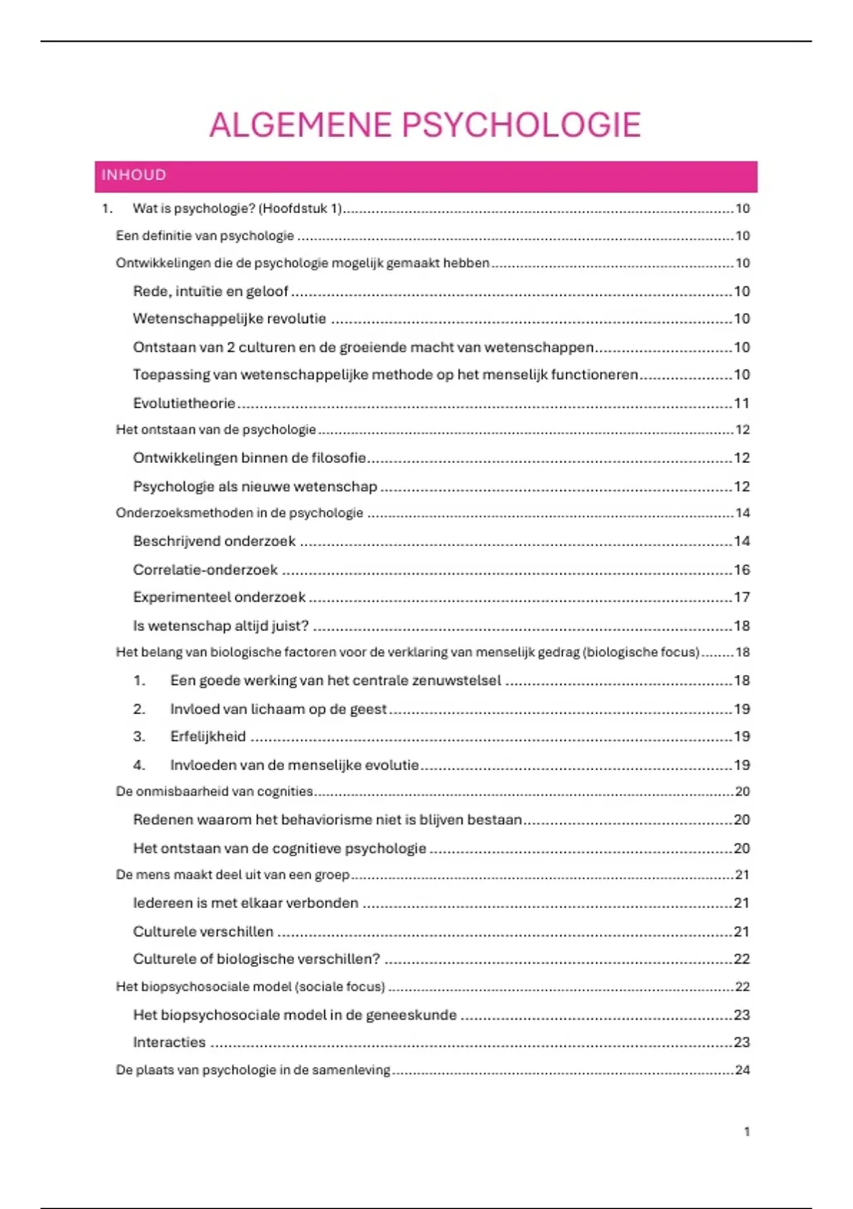 1. Wat is psychologie? (Hoofdstuk 1)............................................................................................... 10