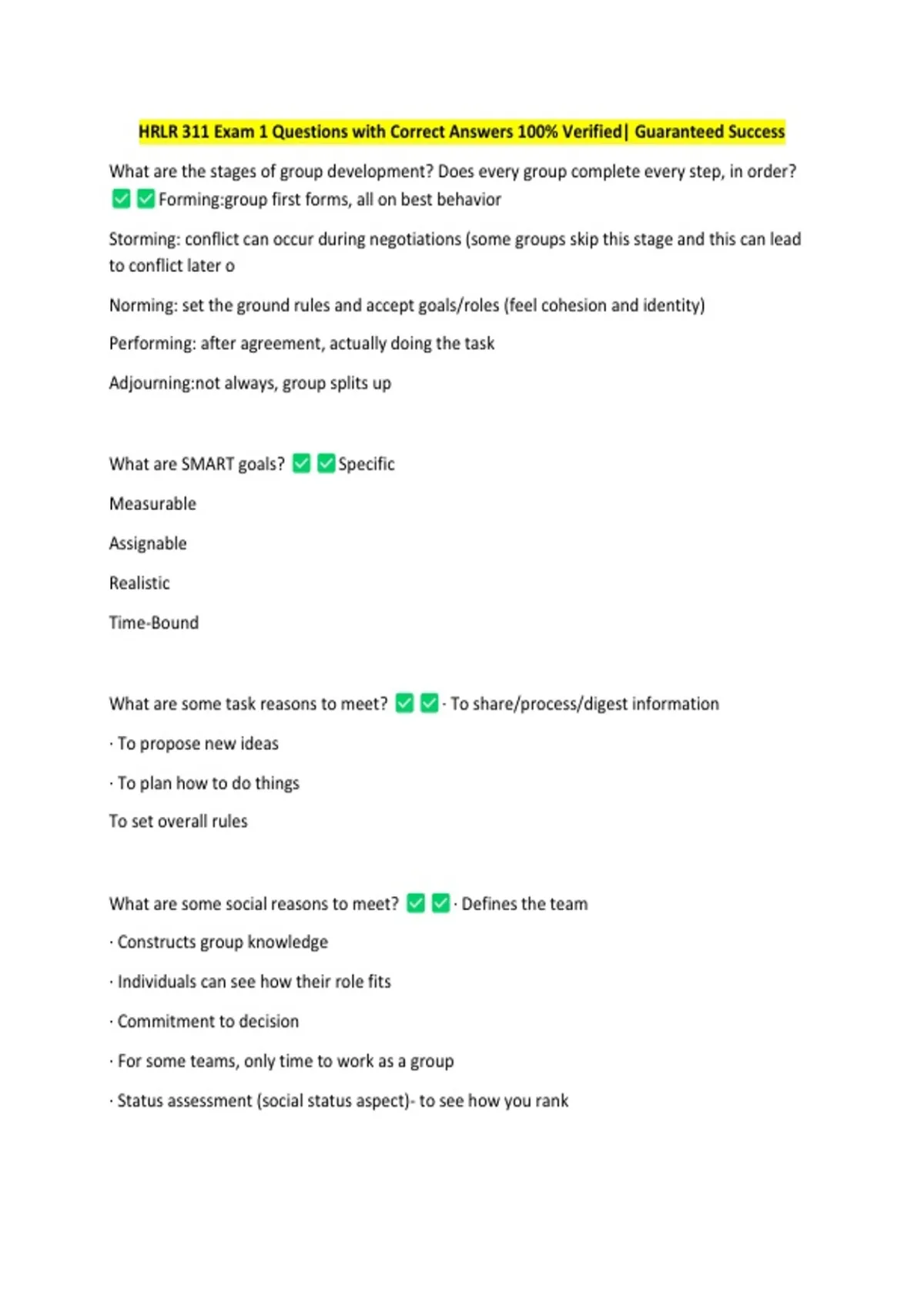 HRLR 311 Exam 1 Questions with Correct Answers 100% Verified| Guaranteed Success