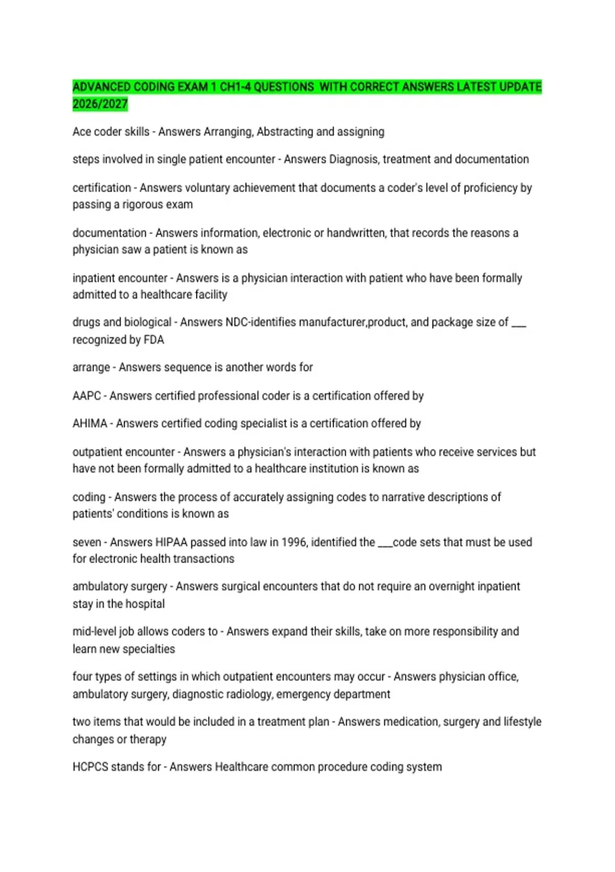 AAPC - Answers certified professional coder is a certification offered by