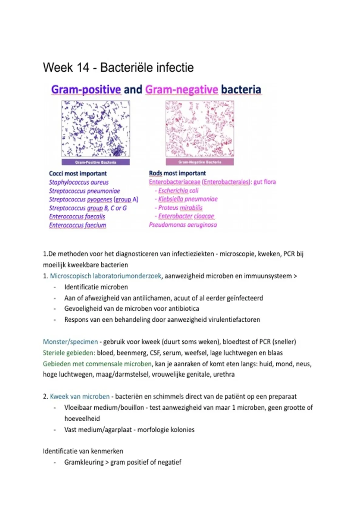 1.De methoden voor het diagnosticeren van infectieziekten - microscopie, kweken, PCR bij