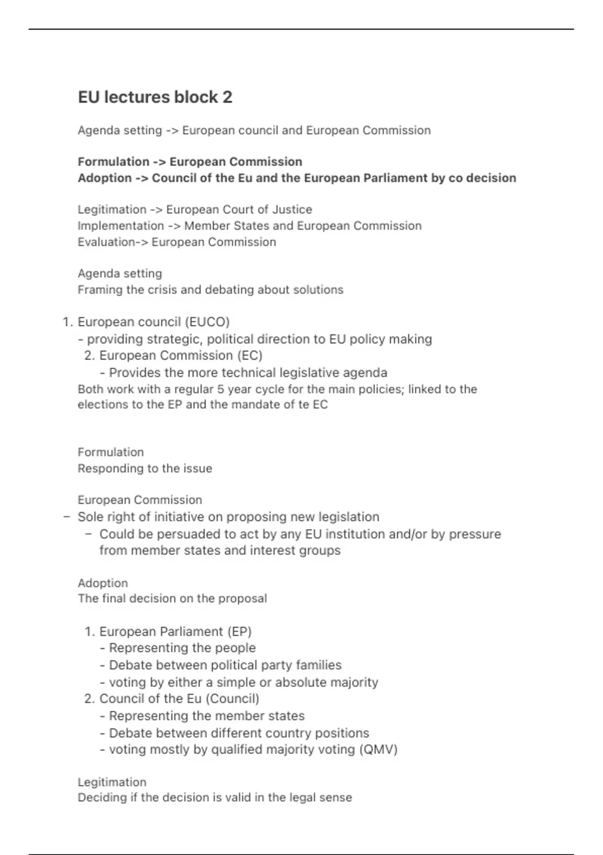 Notes from the lectures about EU economic and legal structure.