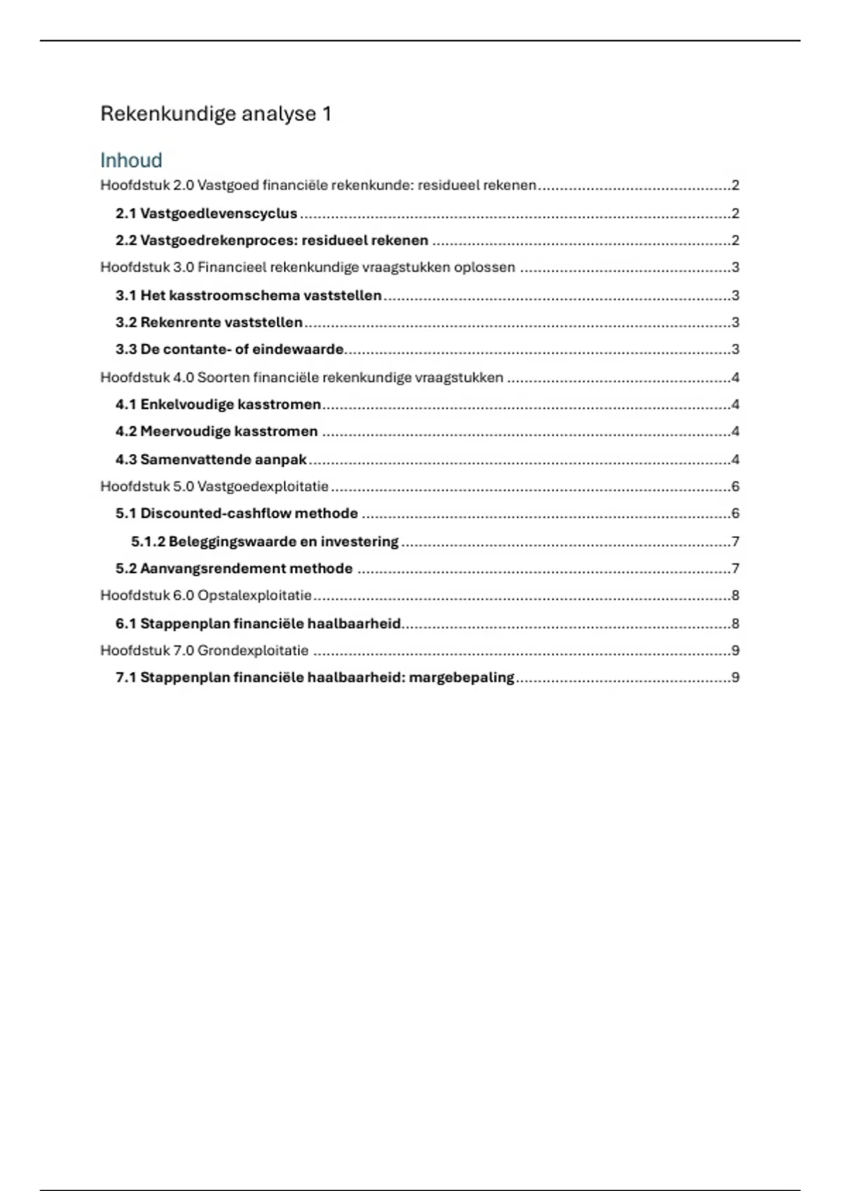 Hoofdstuk 2.0 Vastgoed financiële rekenkunde: residueel rekenen ............................................2