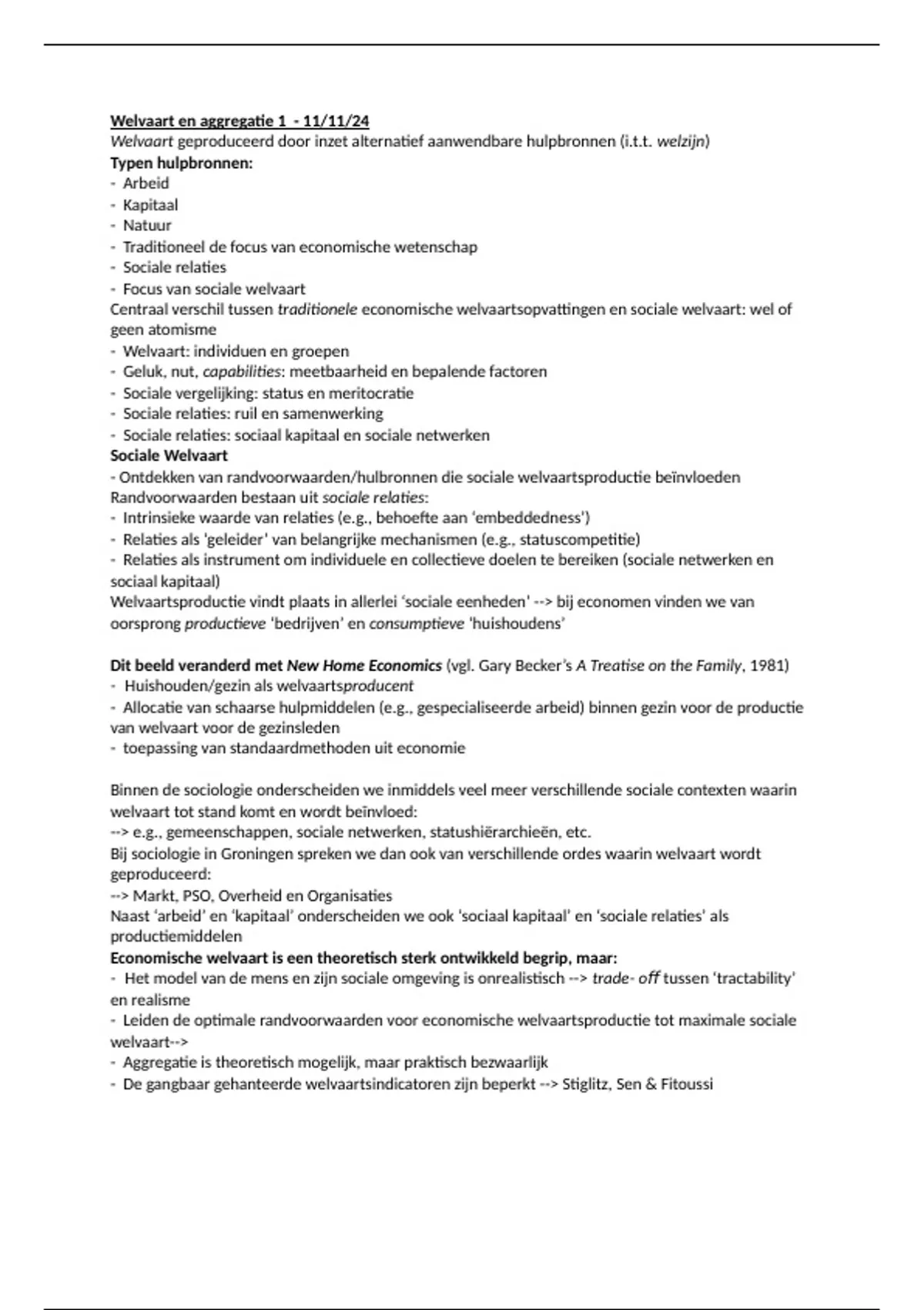 Aantekeningen van de colleges 24/25 van het vak sociale welvaart.