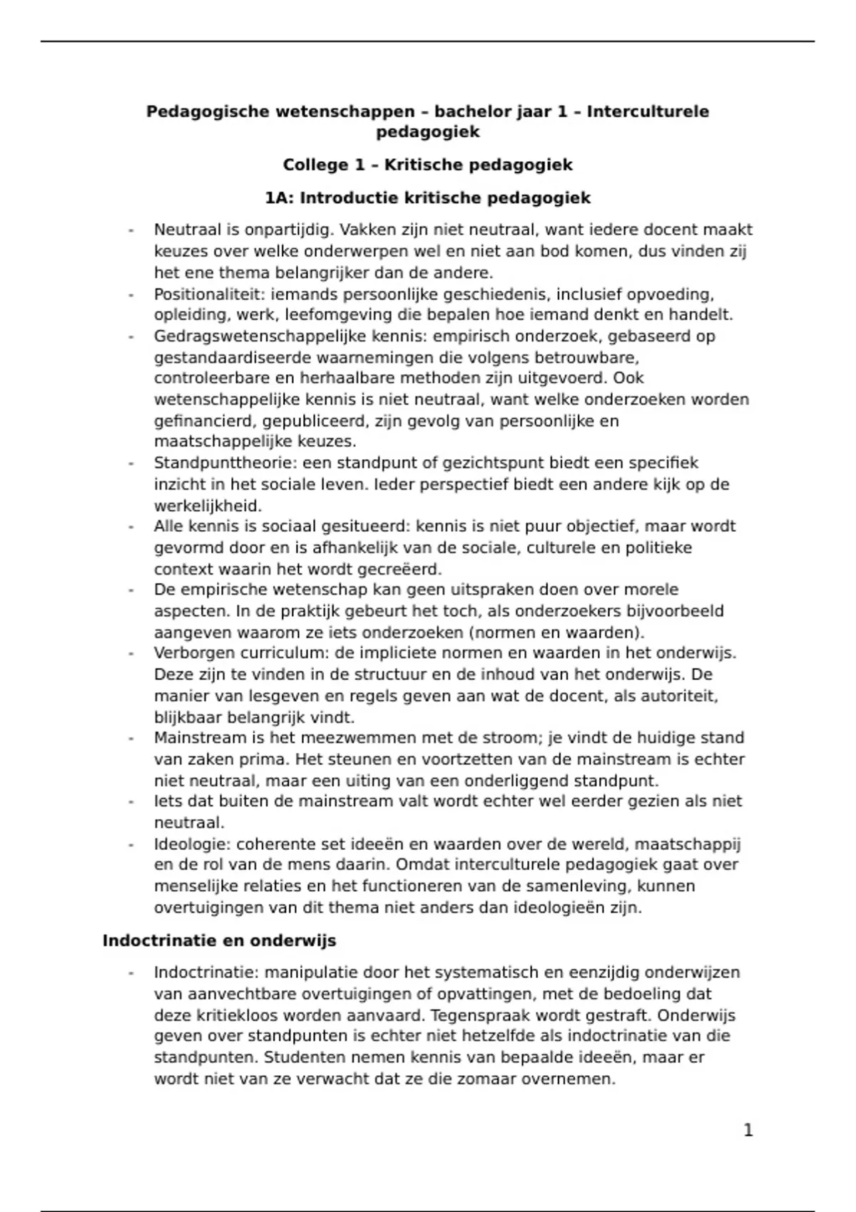en de rol van de mens daarin. Omdat interculturele pedagogiek gaat over