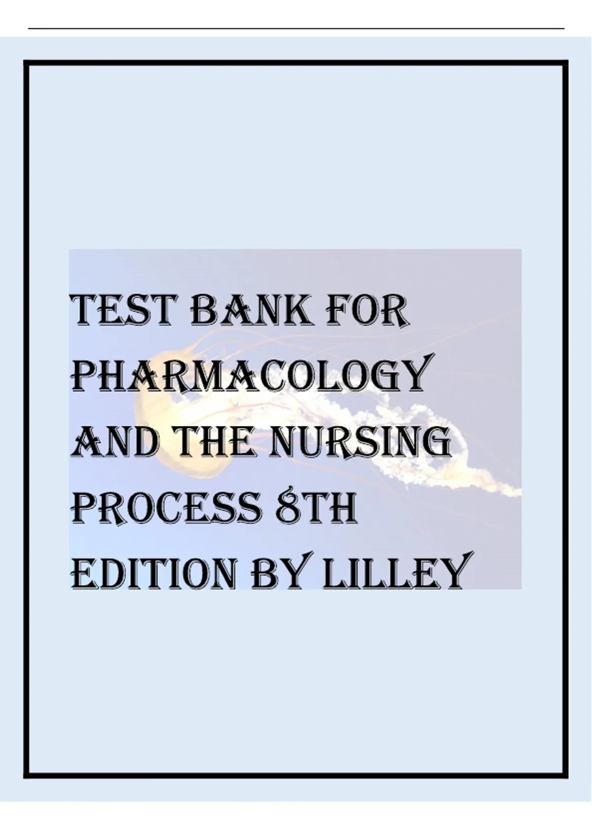 This official Test Bank accompanies Pharmacology and the Nursing Process, 8th Edition by Lilley, Collins, and Snyder. It contains comprehensive exam-style questions and answers covering all major topics, including drug classifications, nursing process application, pharmacologic principles, and patient safety. Perfect for nursing students preparing for exams, NCLEX, and classroom assessments.