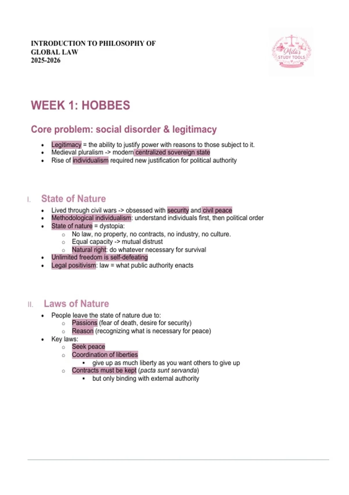 WEEK 1: HOBBES