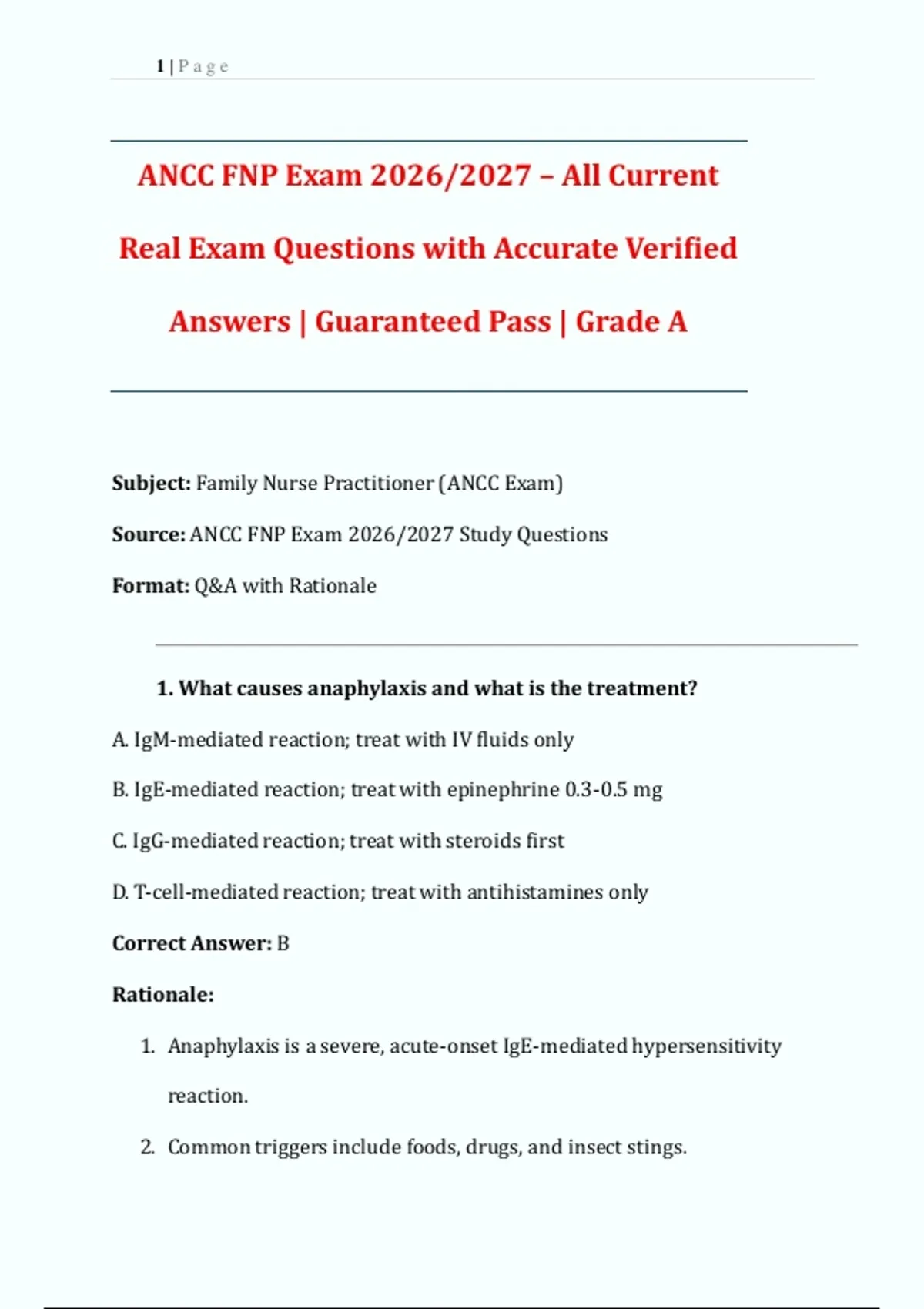 Source: ANCC FNP Exam 2026/2027 Study Questions