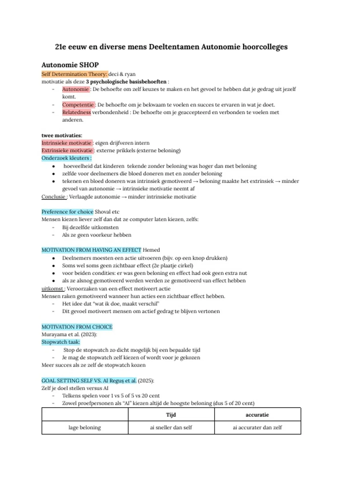 -​ Autonomie : De behoefte om zelf keuzes te maken en het gevoel te hebben dat je gedrag uit jezelf